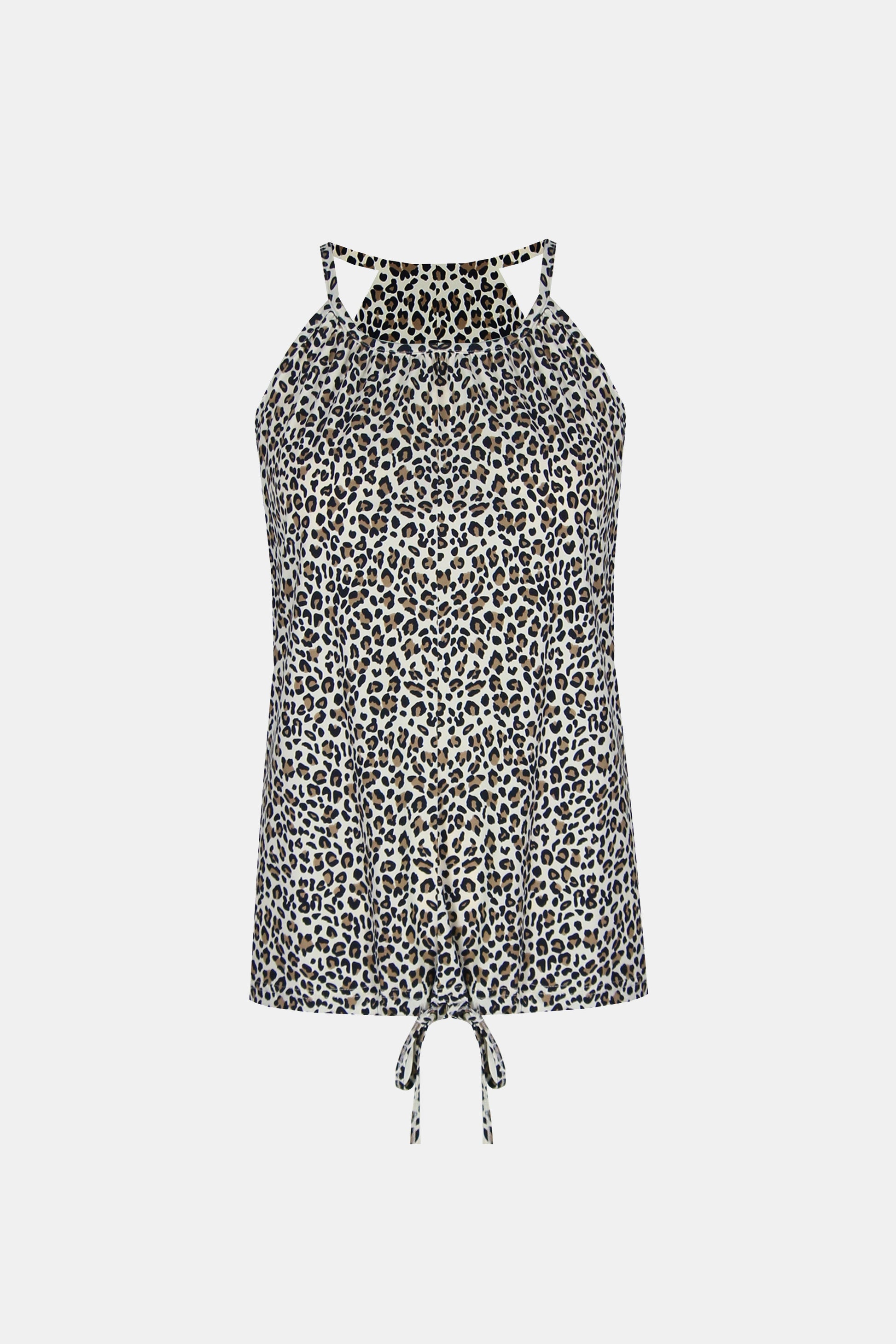 De Angel top heeft een ronde hals en dieper uitgesneden schouderbladen. De top heeft een speelse print en een strikje aan de voorkant. Komt in de kleuren zand/mix en zand/zwart.