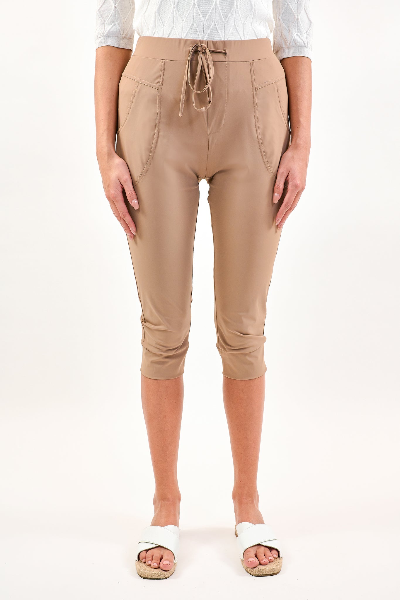 De Aaf capri heeft een aansluitend model met driekwart broekspijpen. De broek heeft een striksluiting en is gemaakt van de comfortabele travelstof. De capri is verkrijgbaar in diverse kleuren.