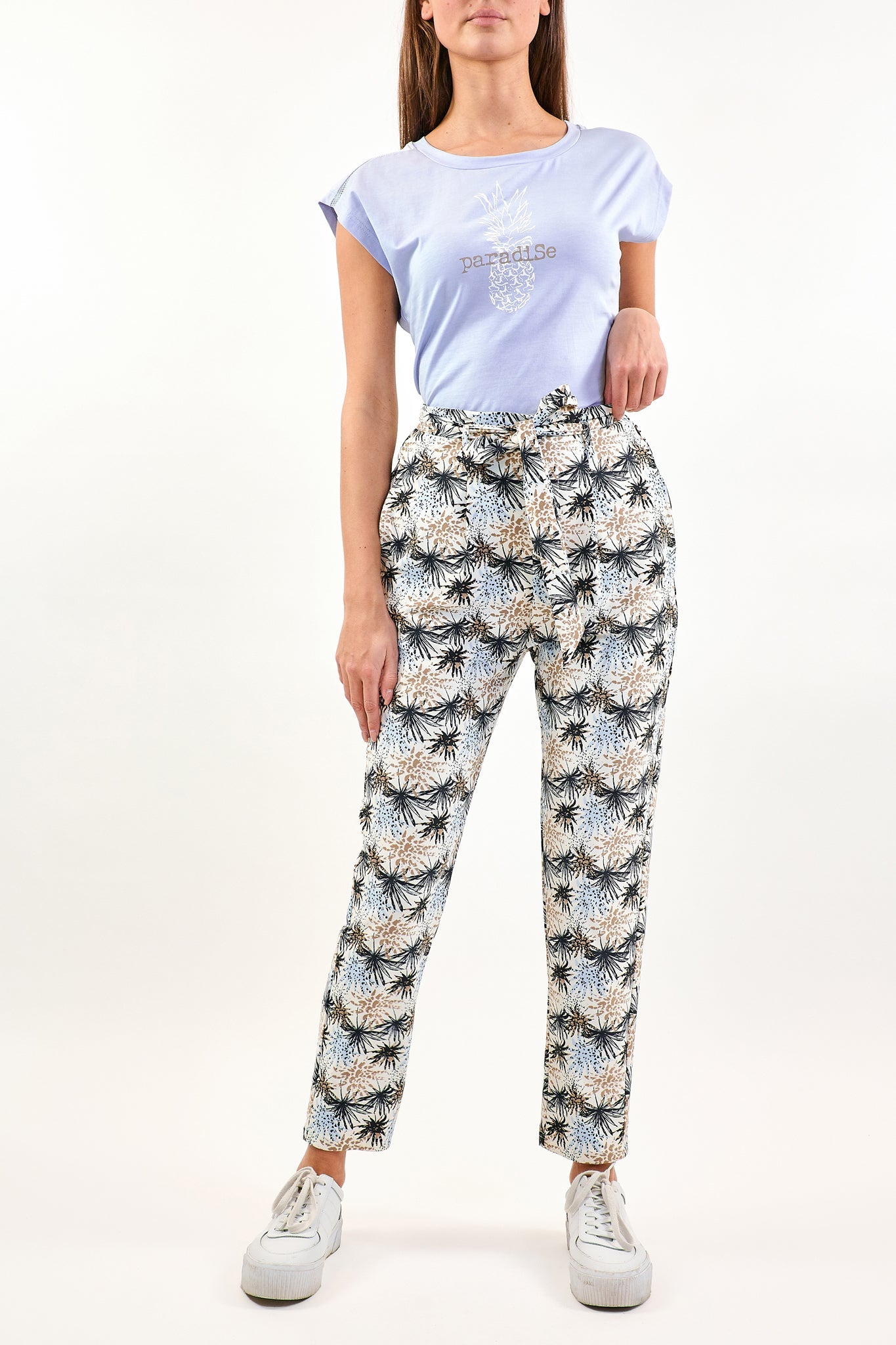 Het basic Alin T-shirt heeft korte mouwen, een ronde hals en een opdruk van een ananas met de tekst: "Paradise".