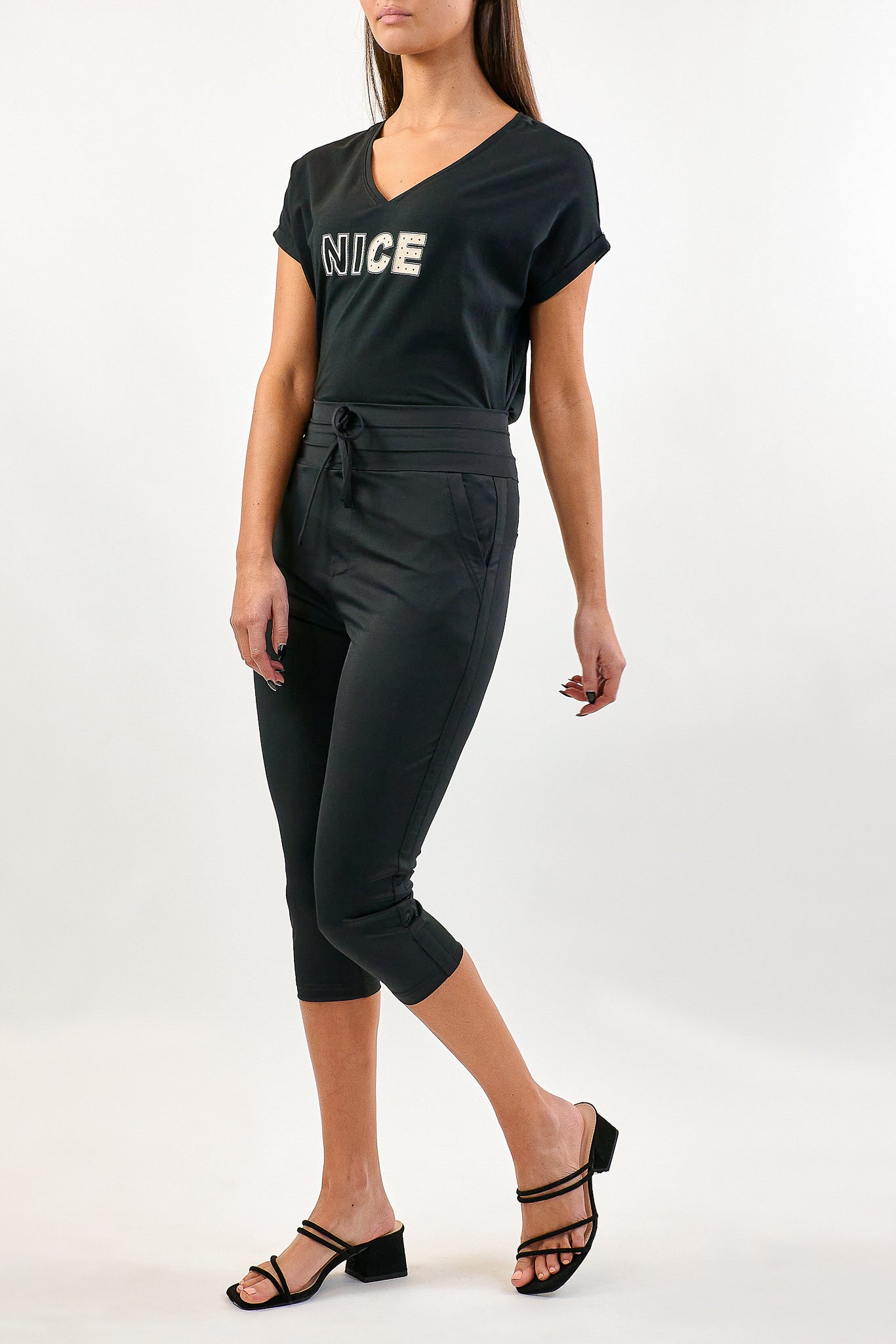 De Aliya broek is een capri broek met een elastische taille met striksluiting. Gemaakt van de comfortabele travelstof.