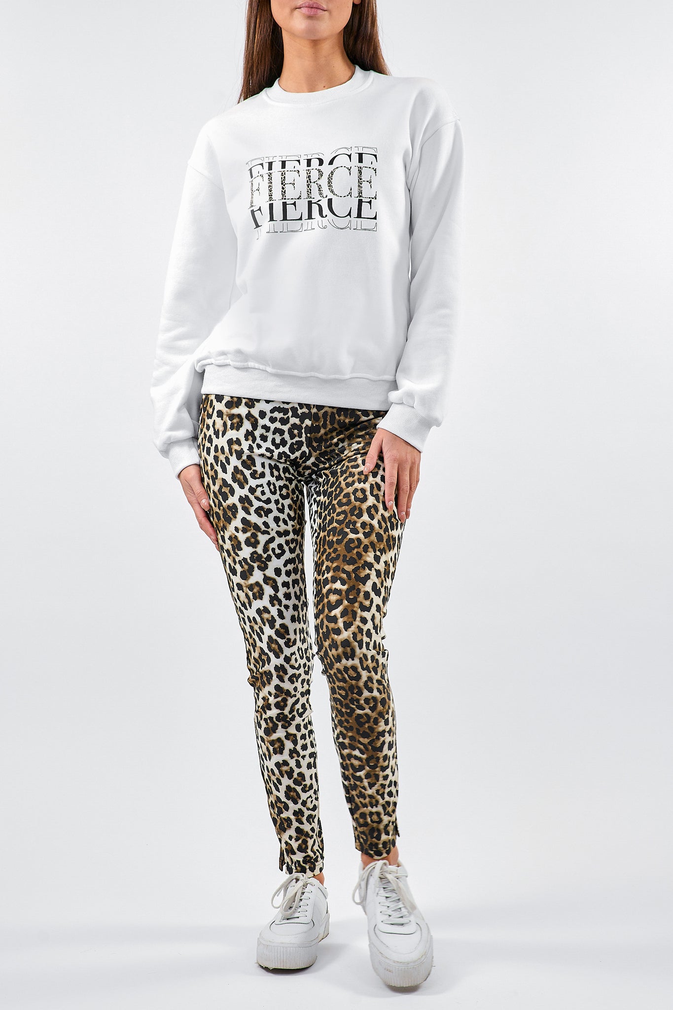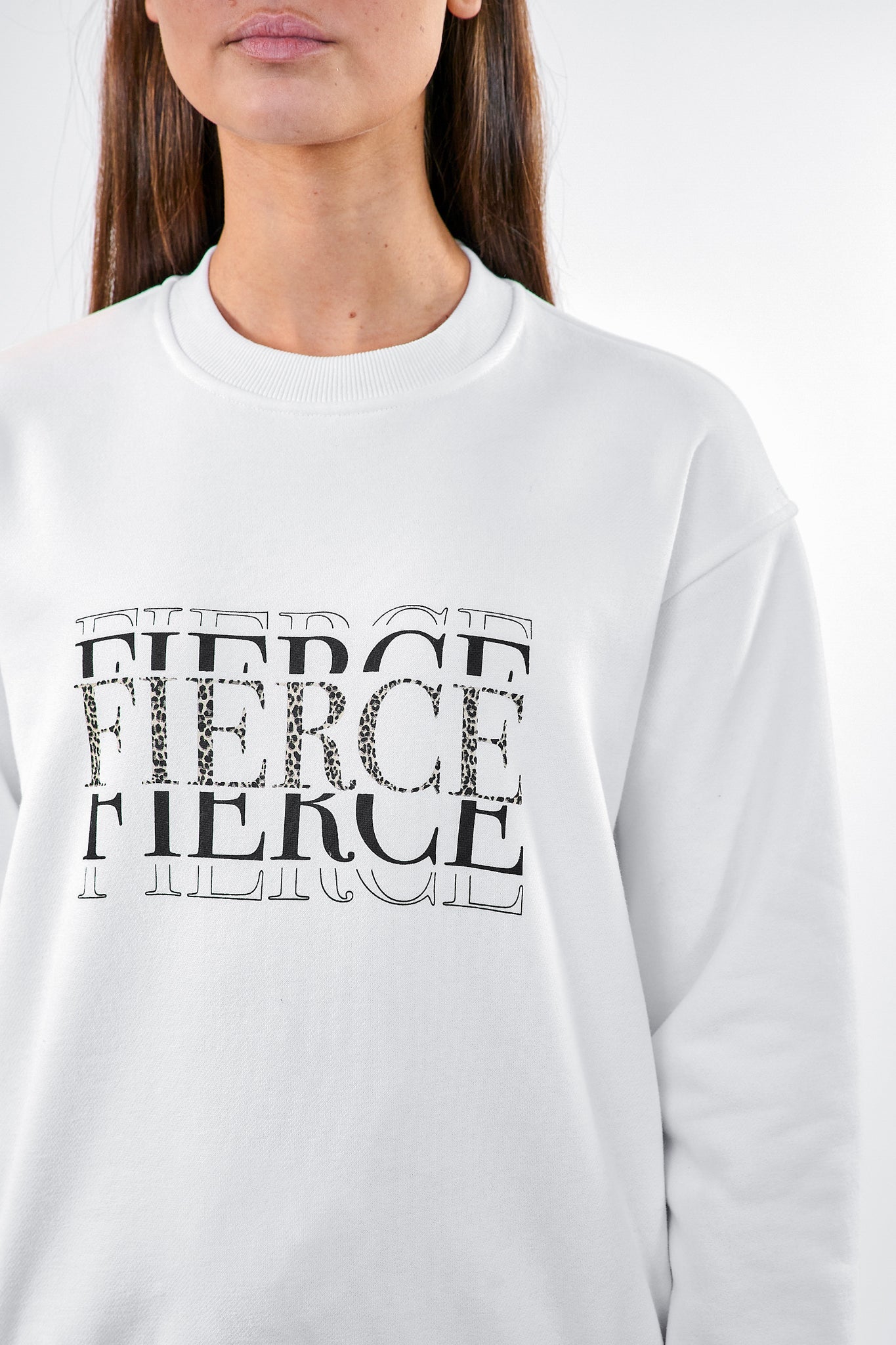 De Aylisa sweater heeft een ronde hals en lange mouwen. De trui heeft een opdruk aan de voorzijde met de tekst: "FIERCE".