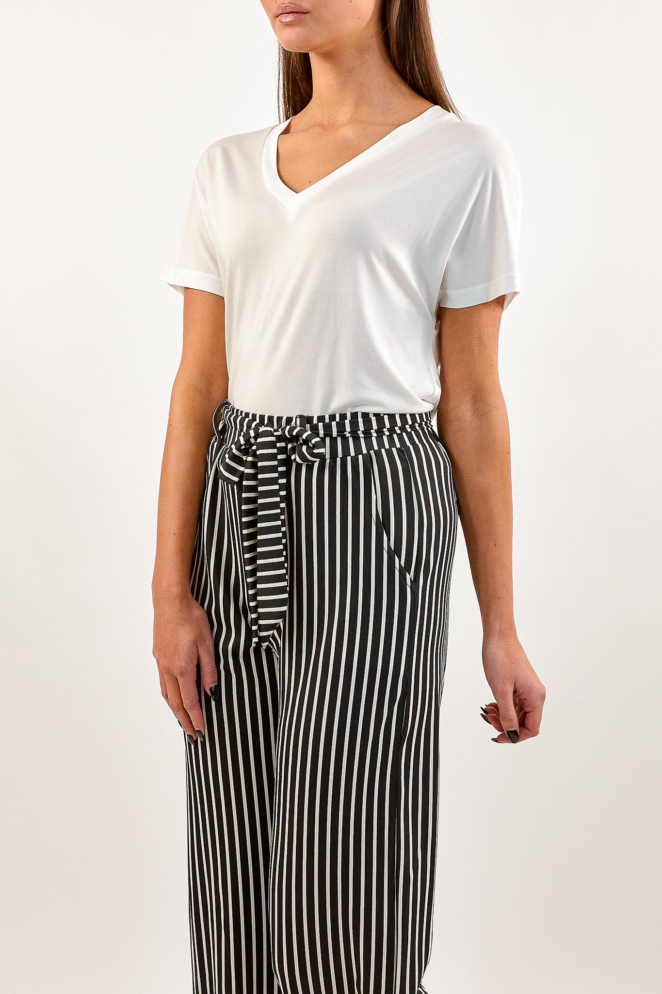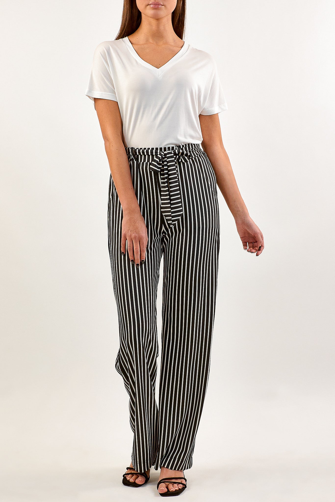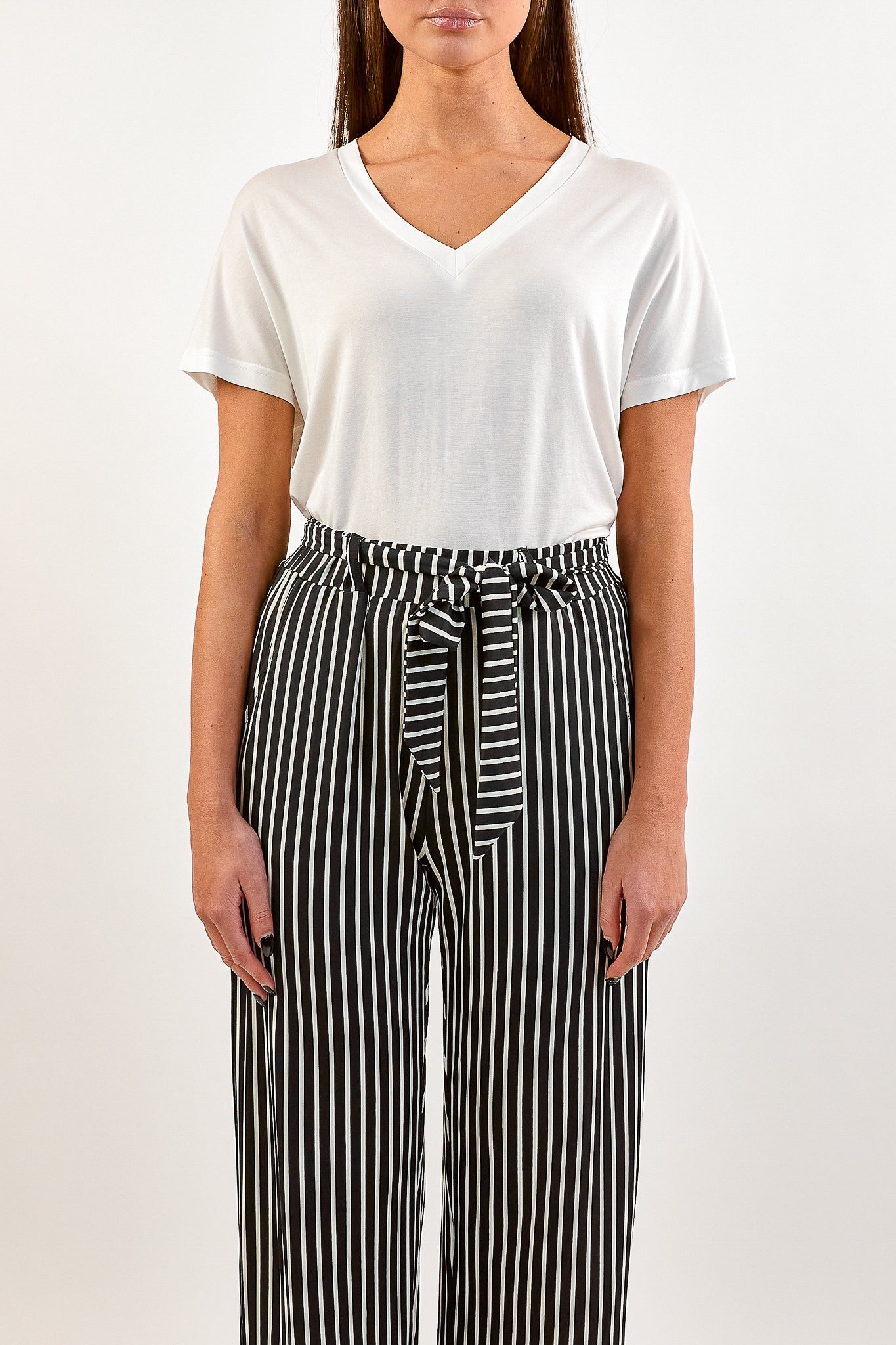 Het Aminah T-shirt heeft een V-hals en korte mouwen. Het T-shirt komt in de kleuren zwart en wit.