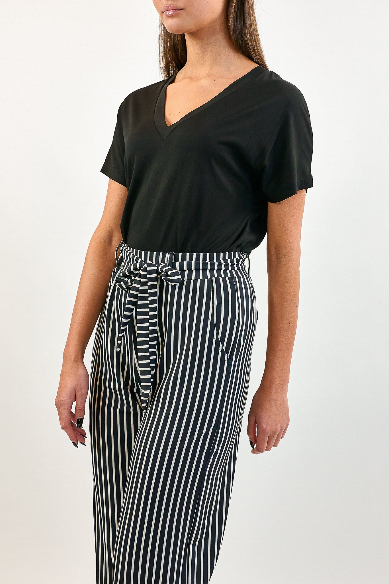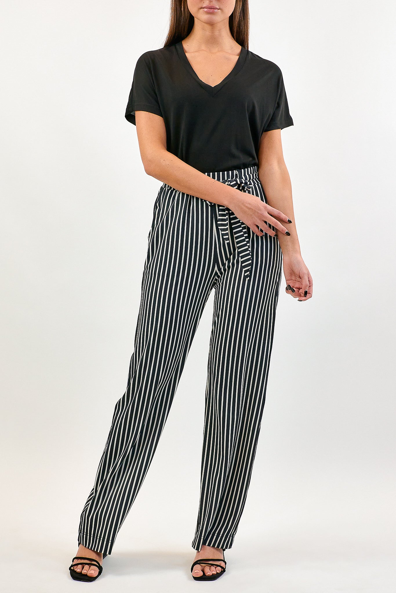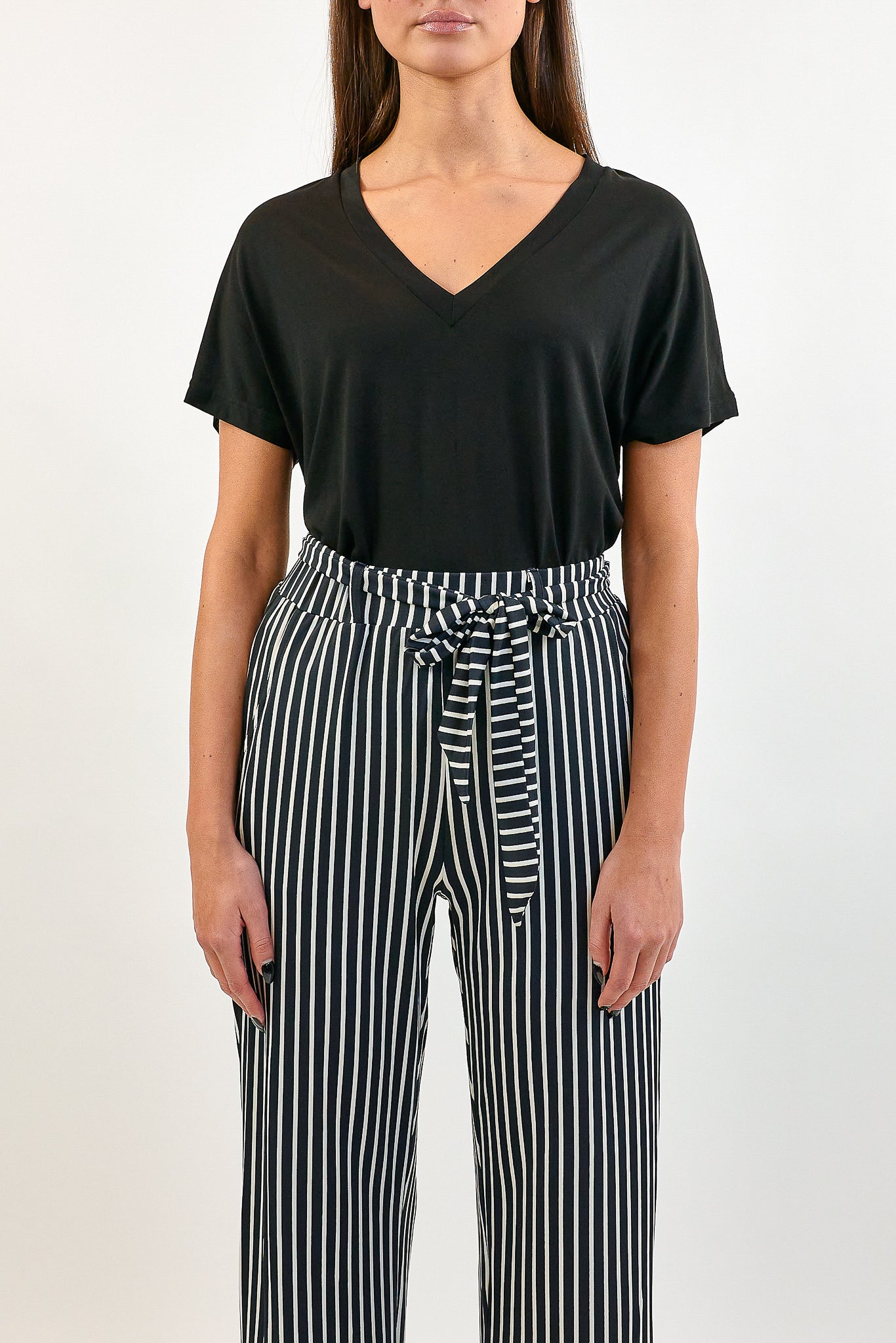 Het Aminah T-shirt heeft een V-hals en korte mouwen. Het T-shirt komt in de kleuren zwart en wit.