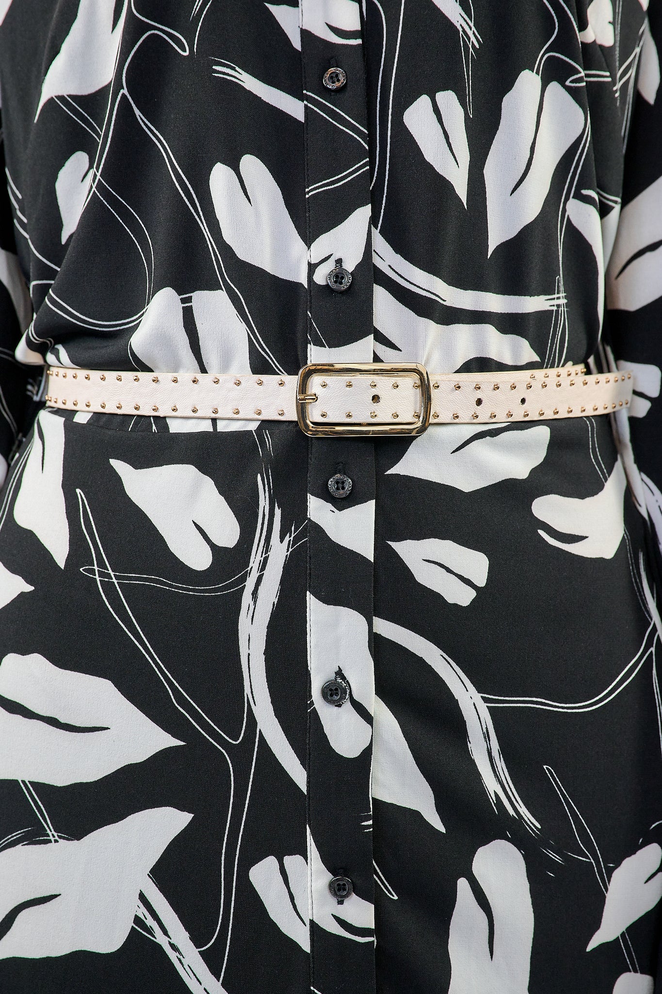 De Amine riem heeft een gouden gesp en heeft sierlijke steentjes.
