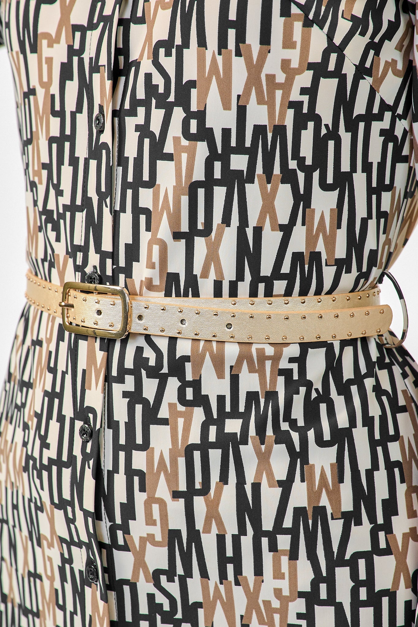 De Amine riem heeft een gouden gesp en heeft sierlijke steentjes.