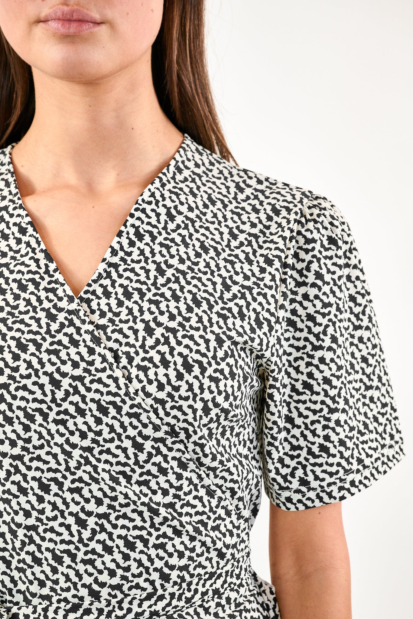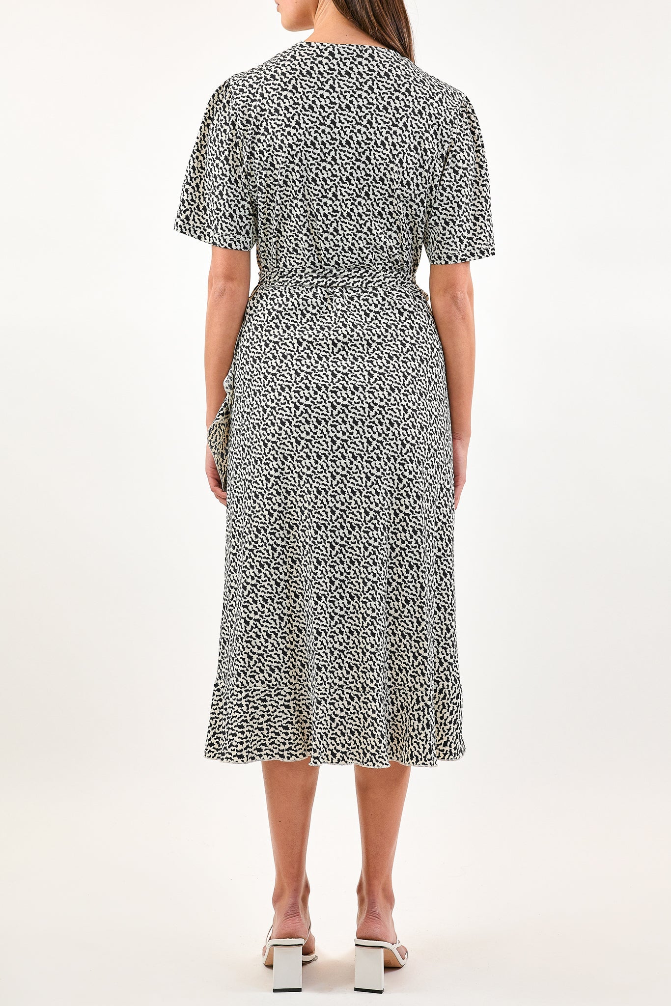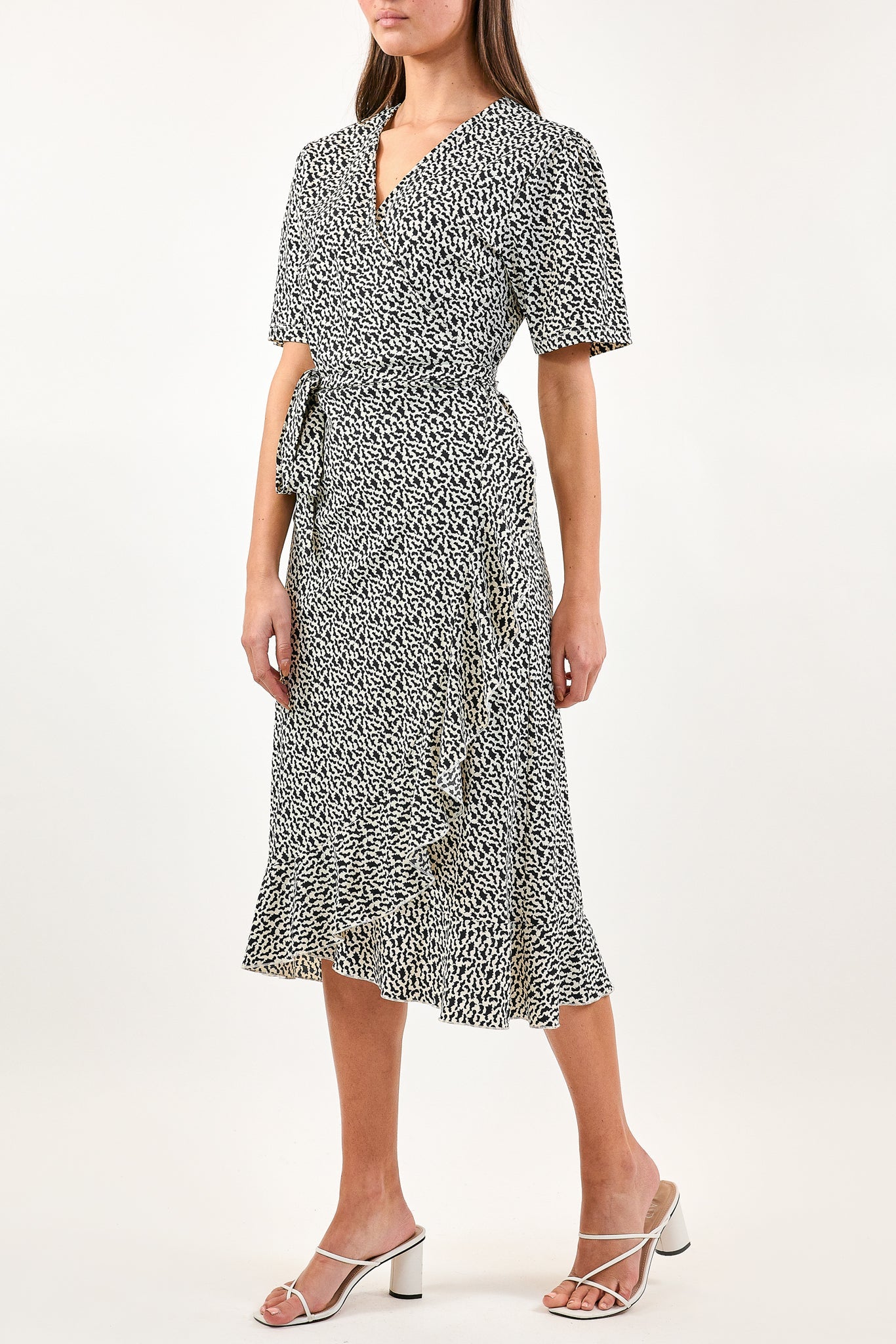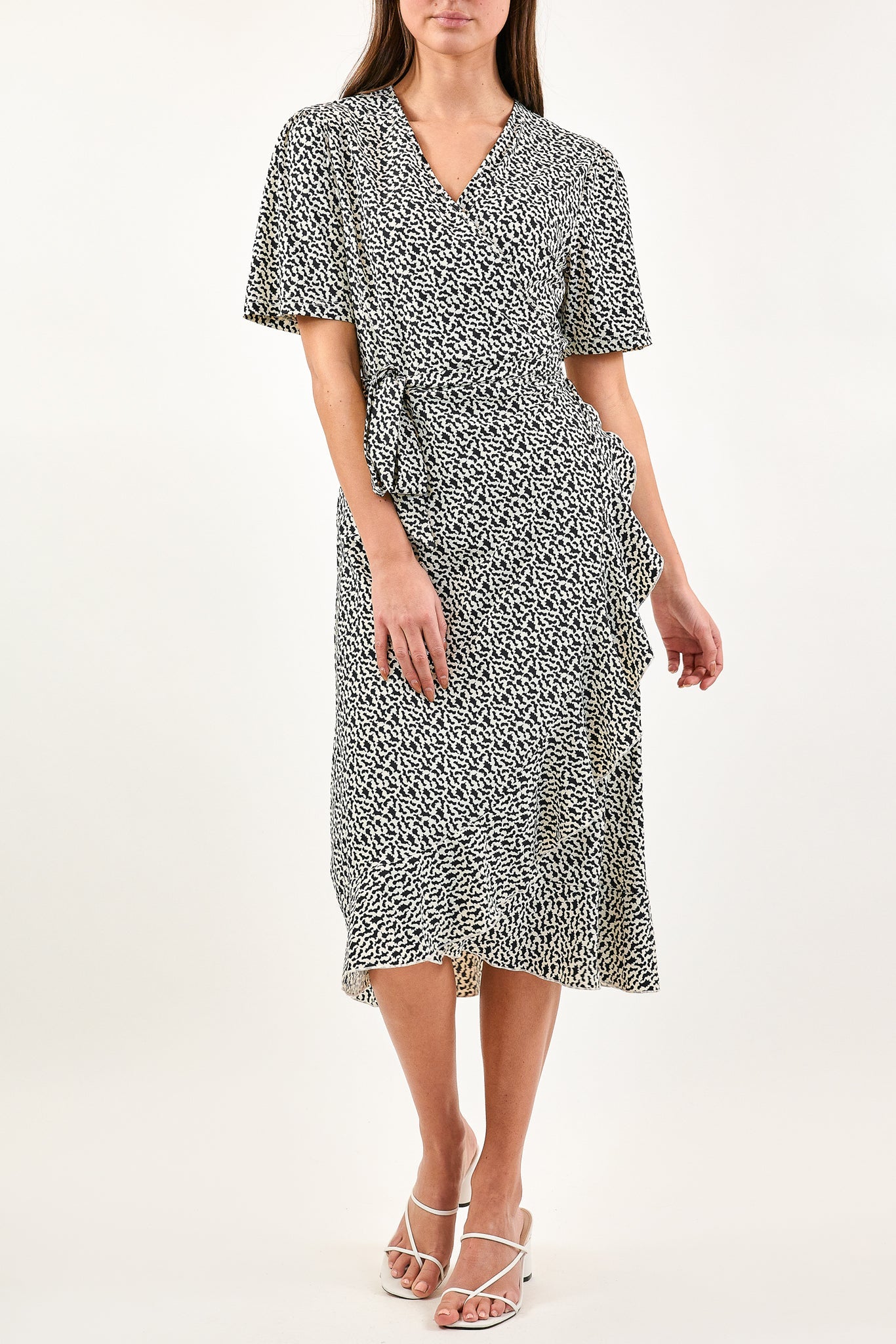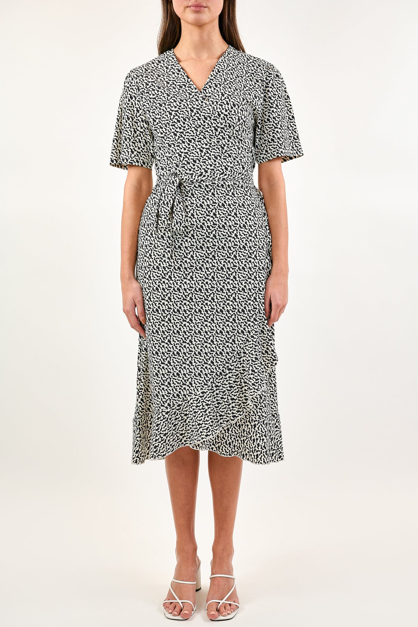 De Anastasia jurk is een overslag jurk met speelse ruffels aan de onderkant. De mouwen zijn half lang en de jurk heeft een strikkoord om de middel voor een getailleerd effect. De jurk is gemaakt van de comfortabele travel stof.
