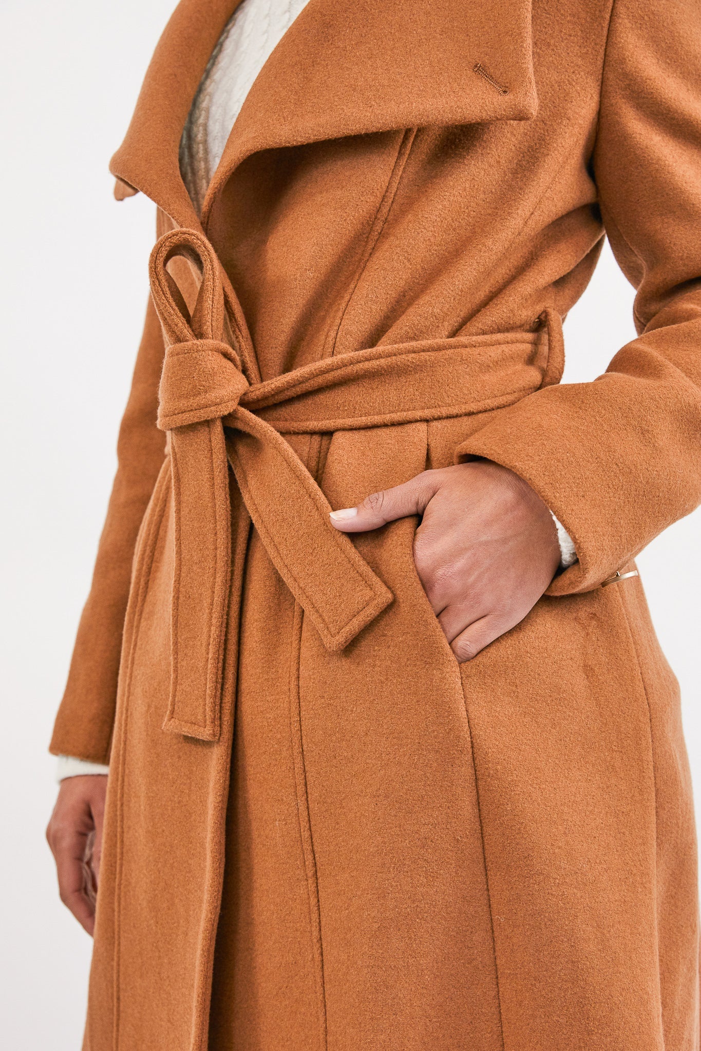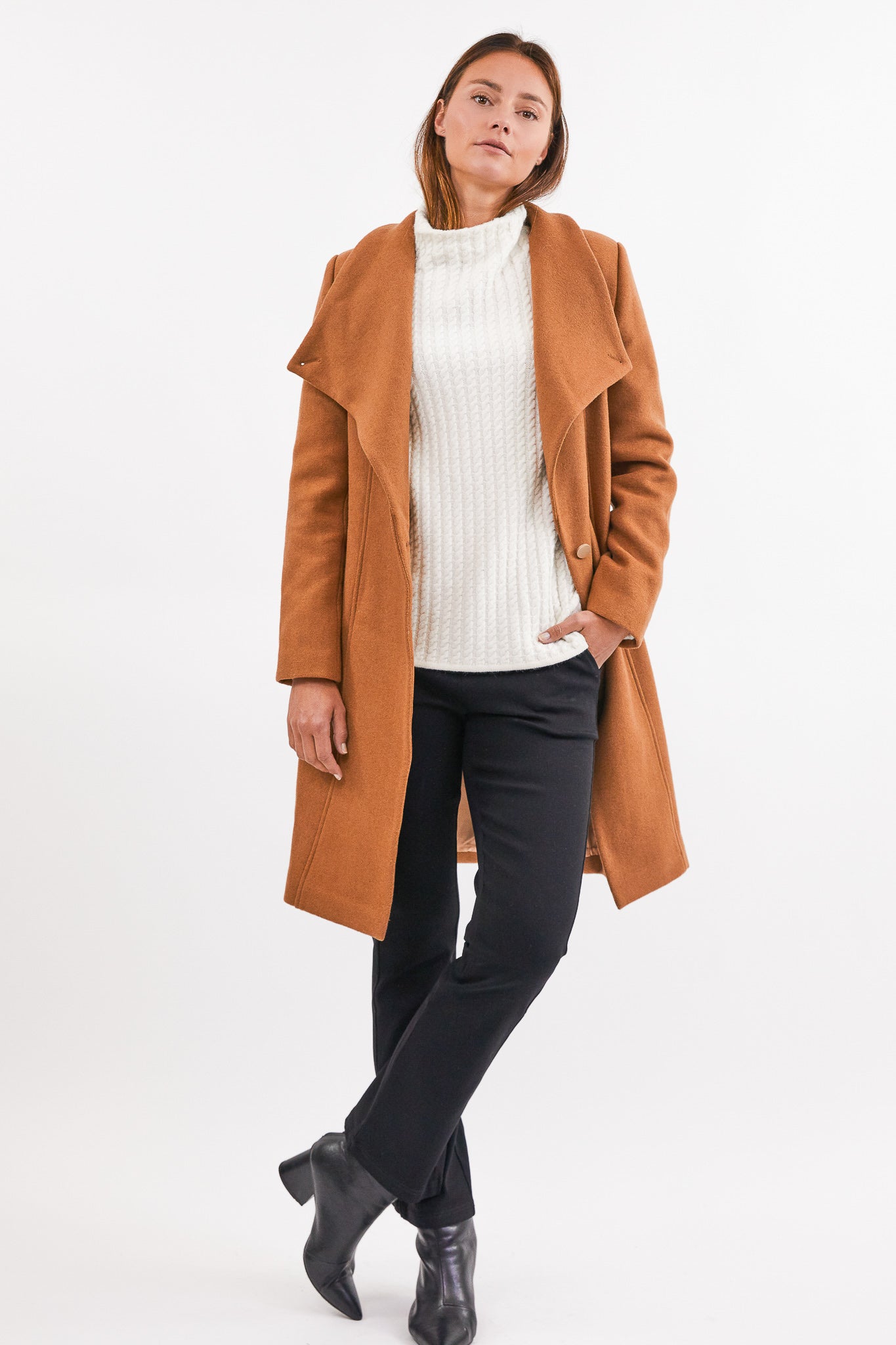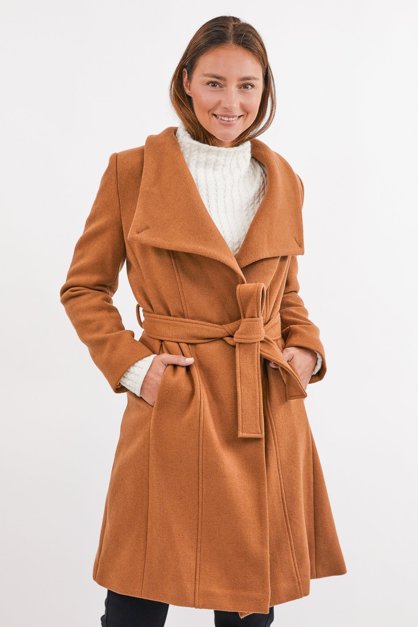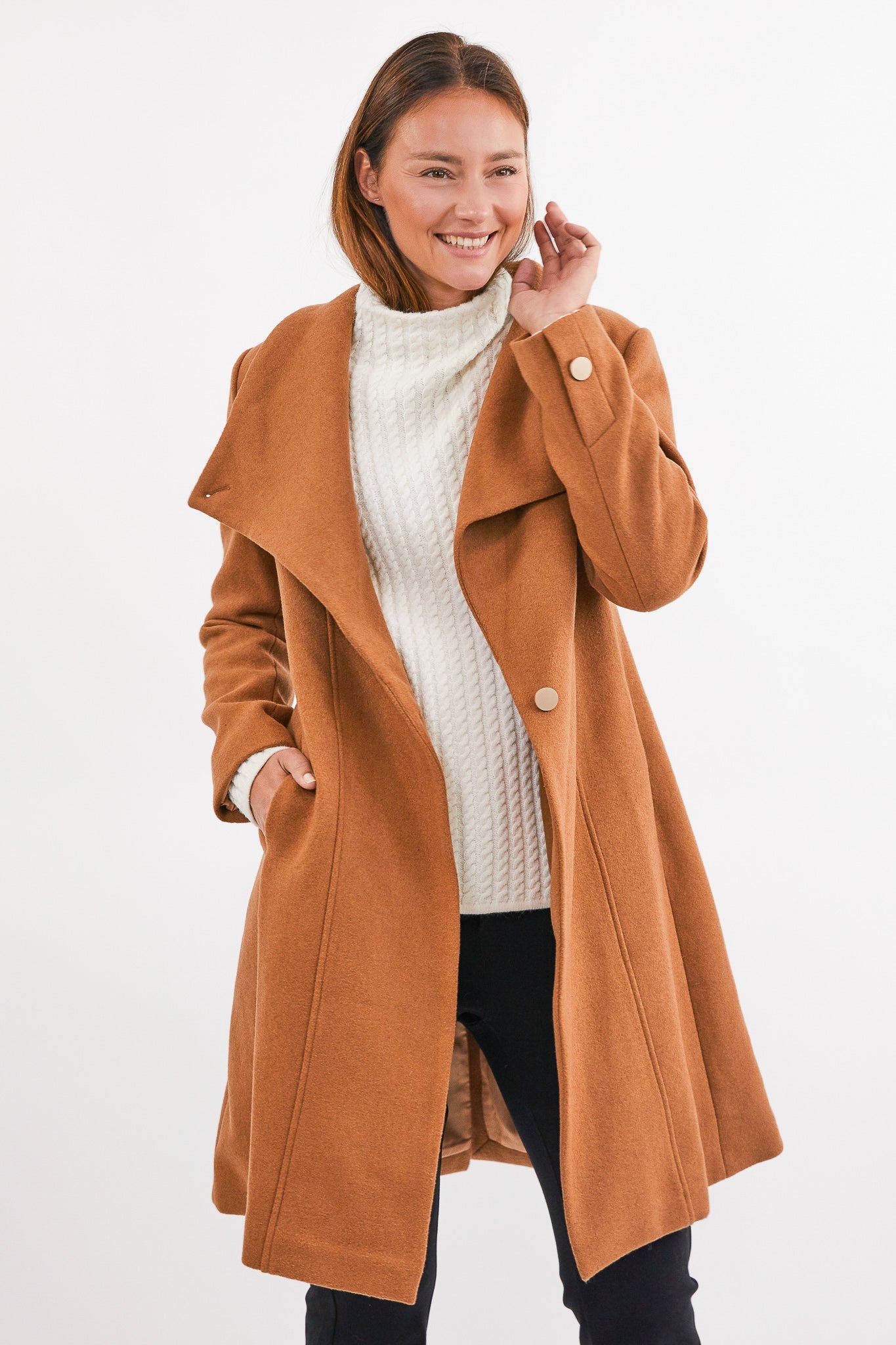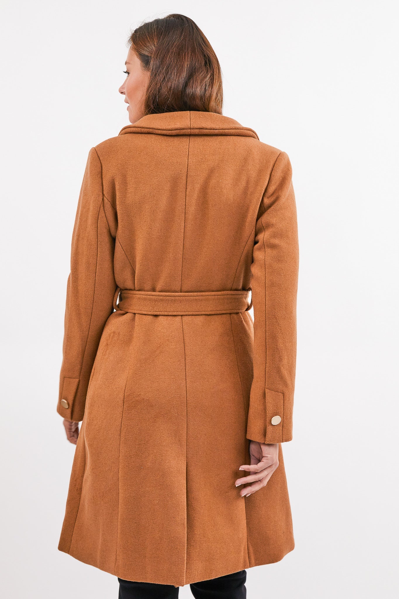 De Chiara jas heeft een reversekraag en een knoopsluiting. De jas is voorzien van een bindceintuur en valt net boven de knie.