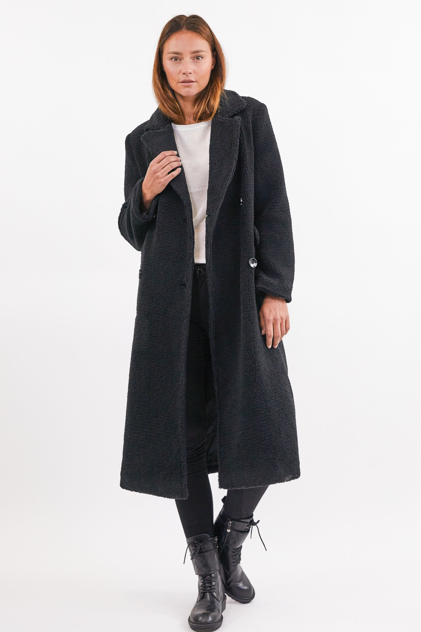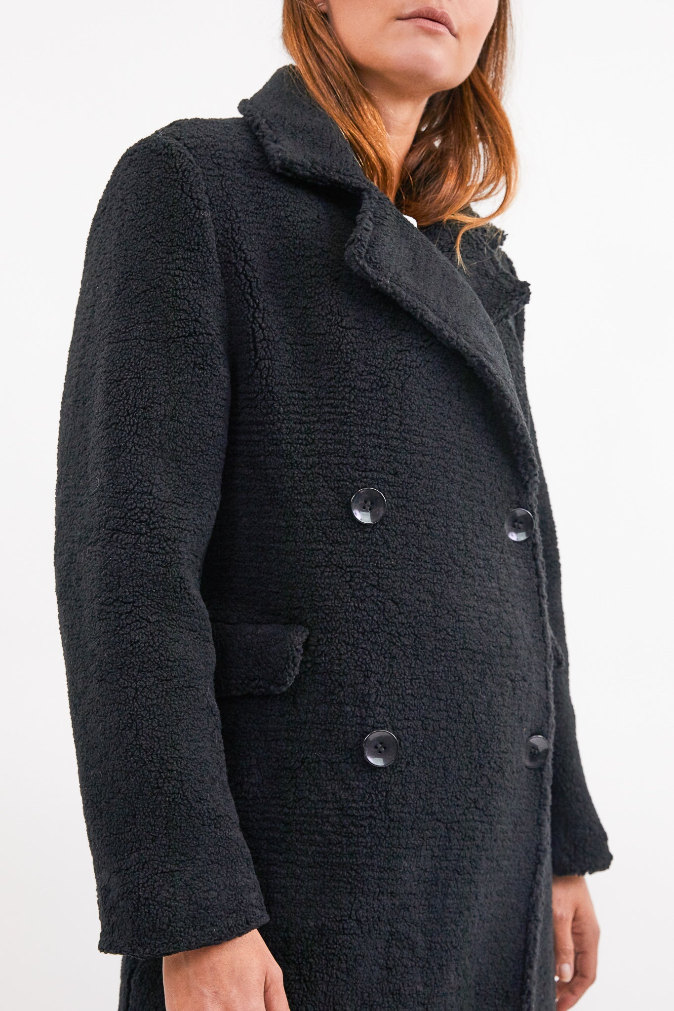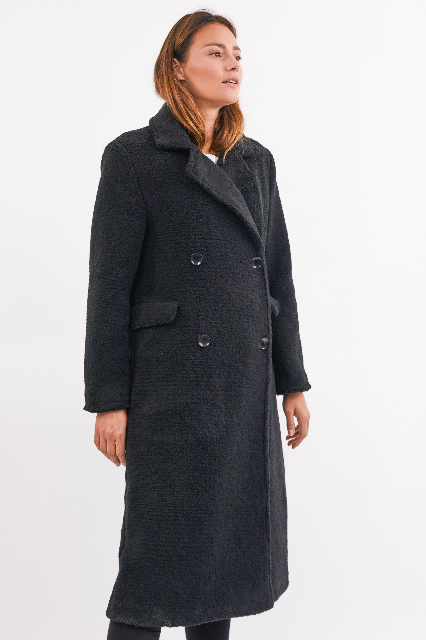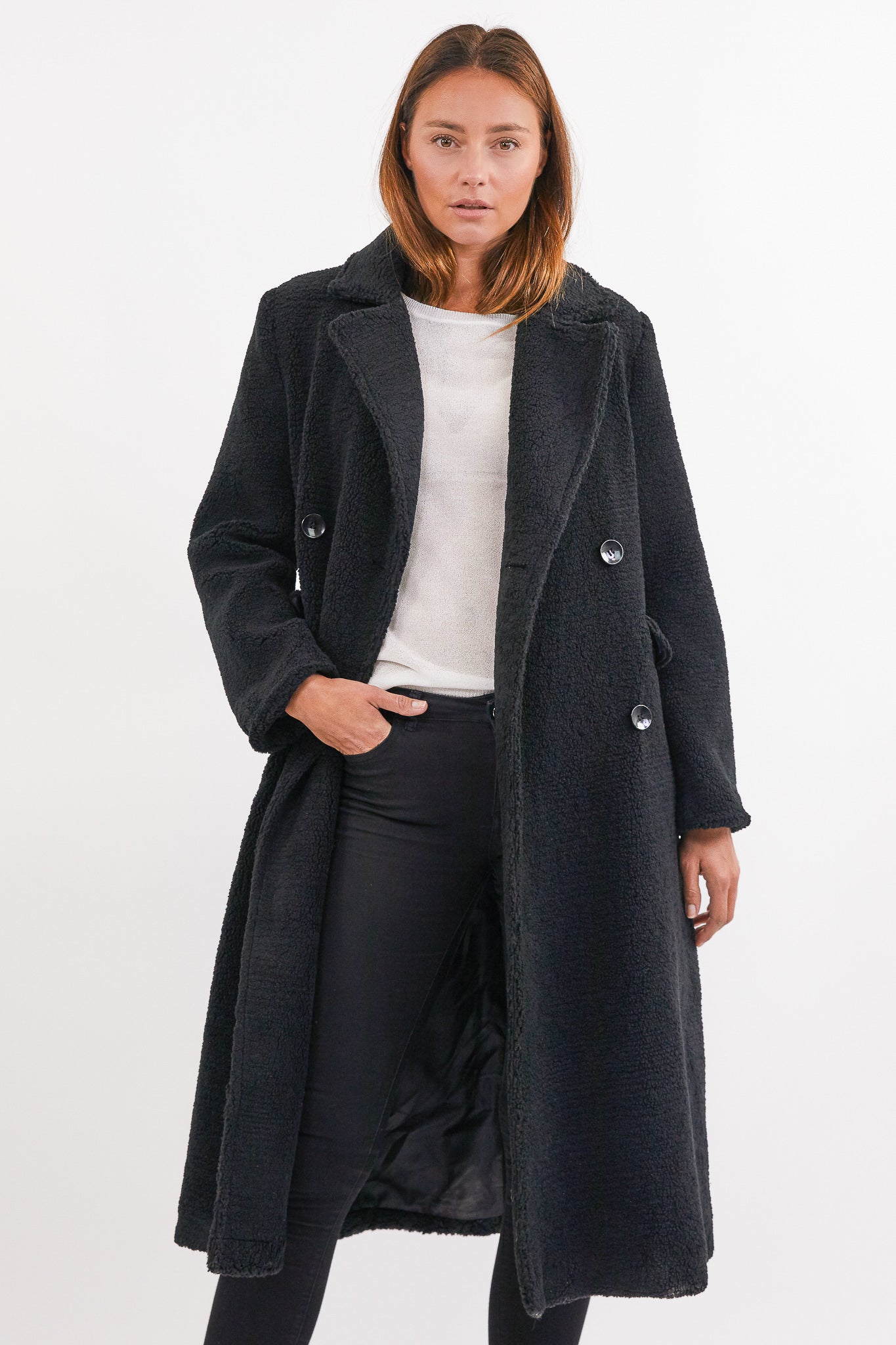 De Ciara jas heeft een reversekraag en is double breasted. De jas heeft zakken en valt net boven de knie.