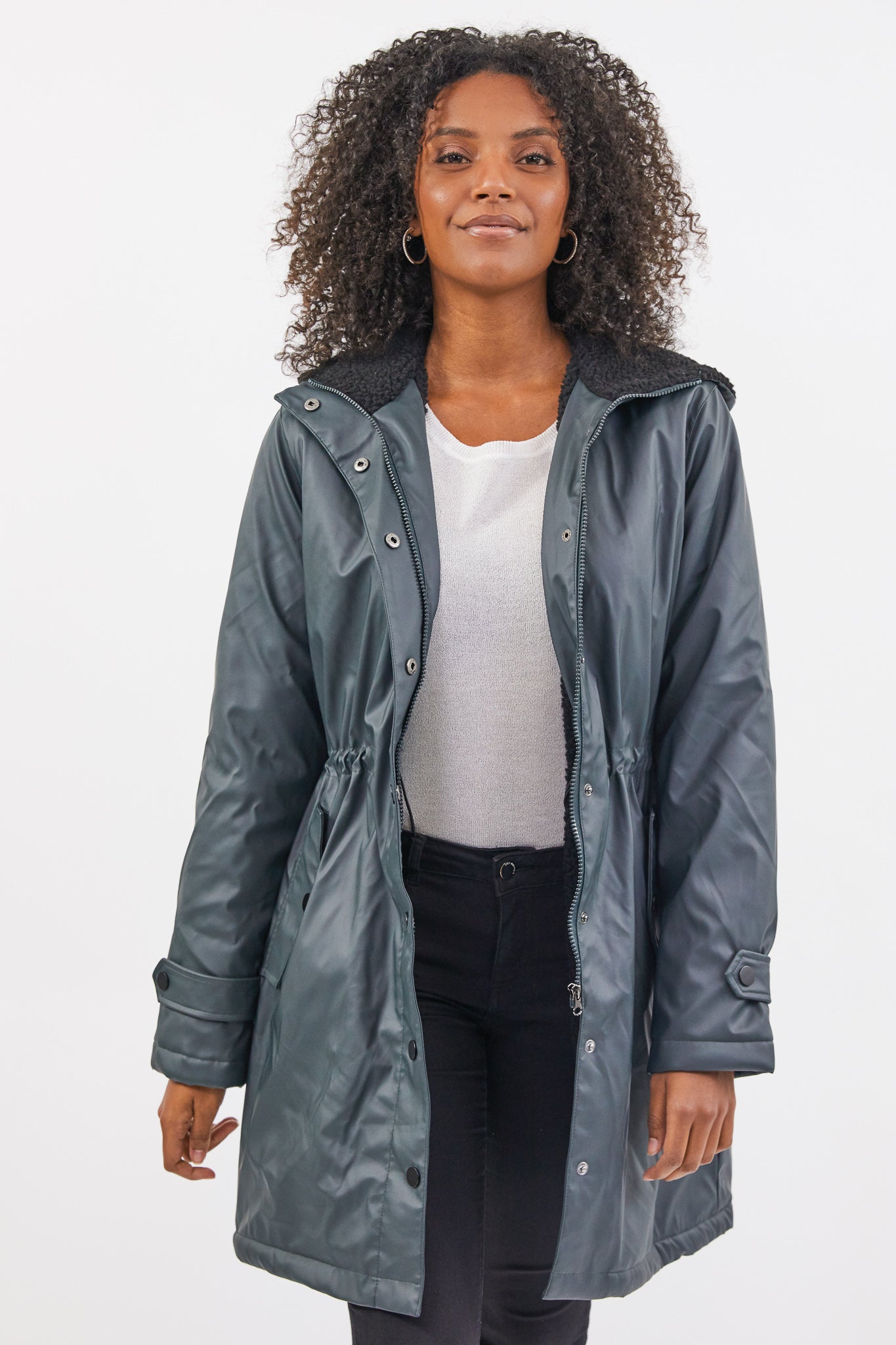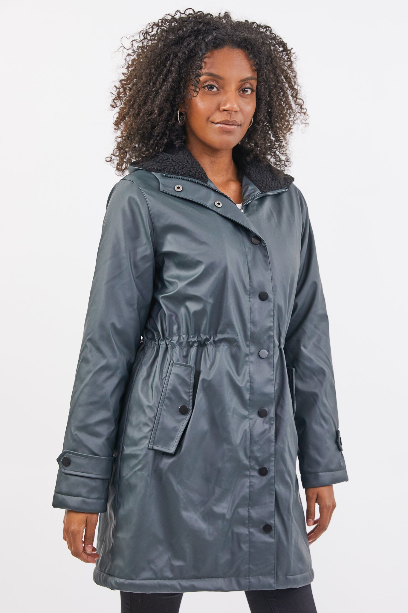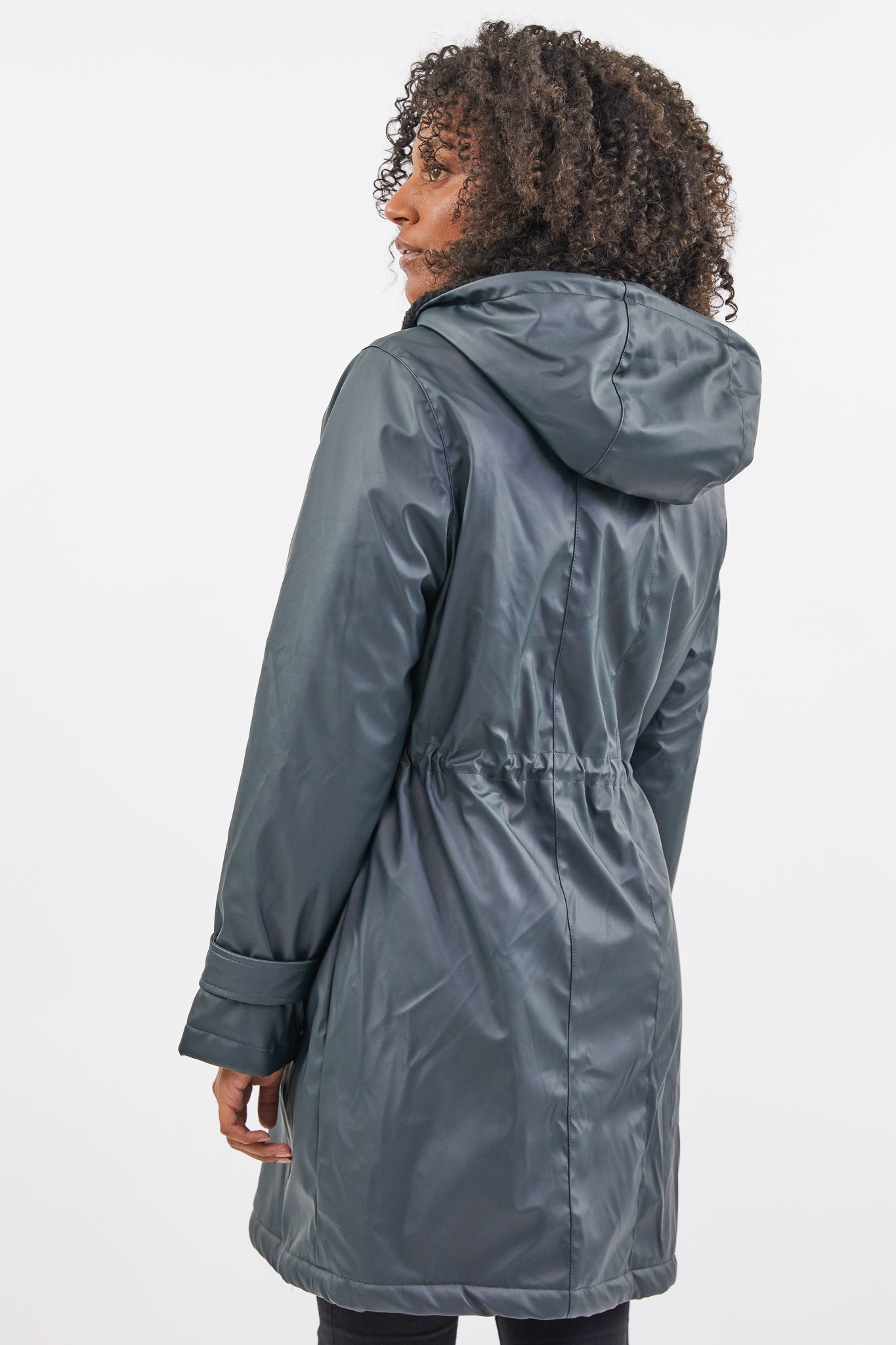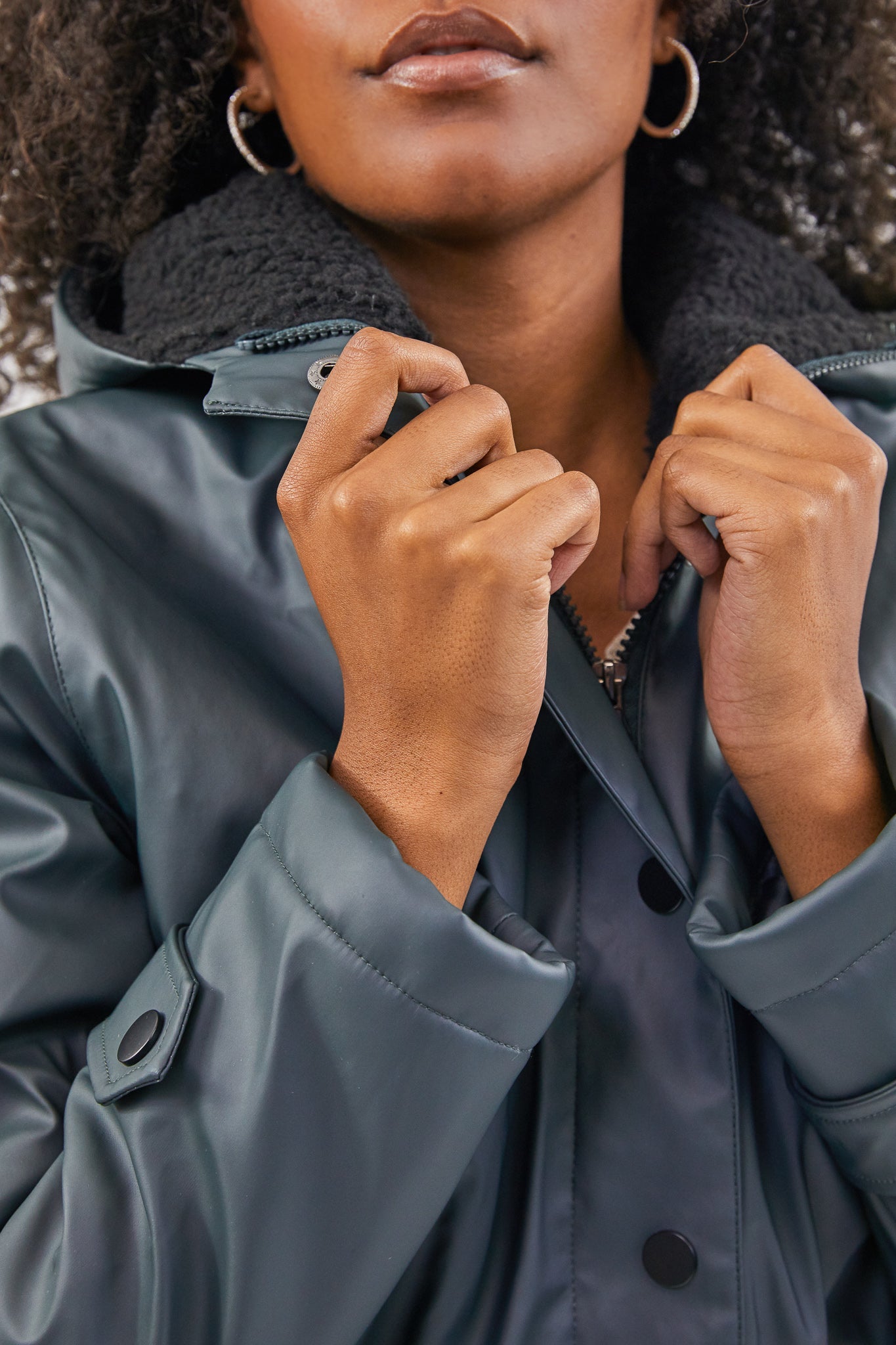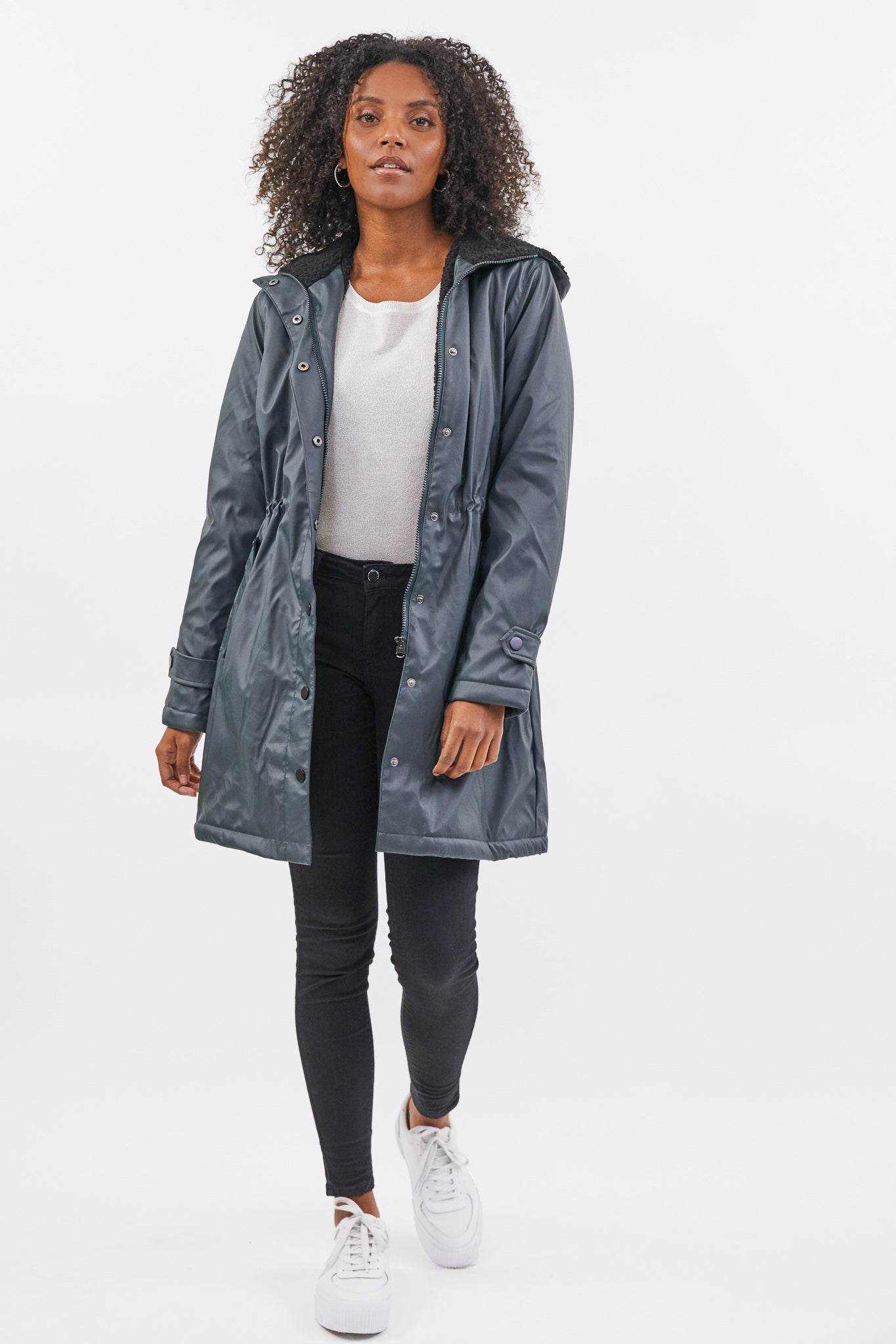 De Cicely jas heeft een knoopsluiting en is voorzien van zakken en een capuchon. De jas komt in het zwart en donkergroen.
