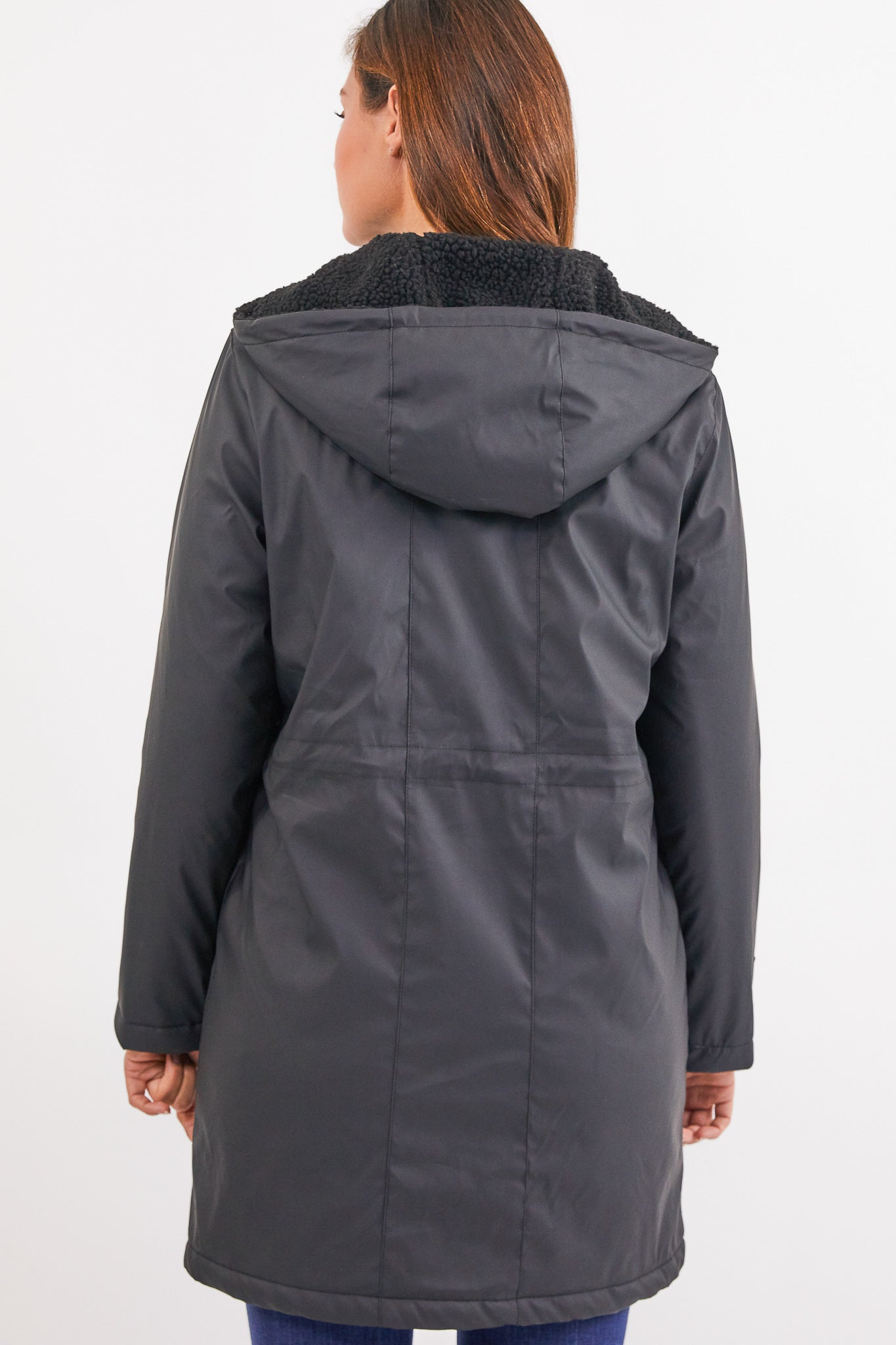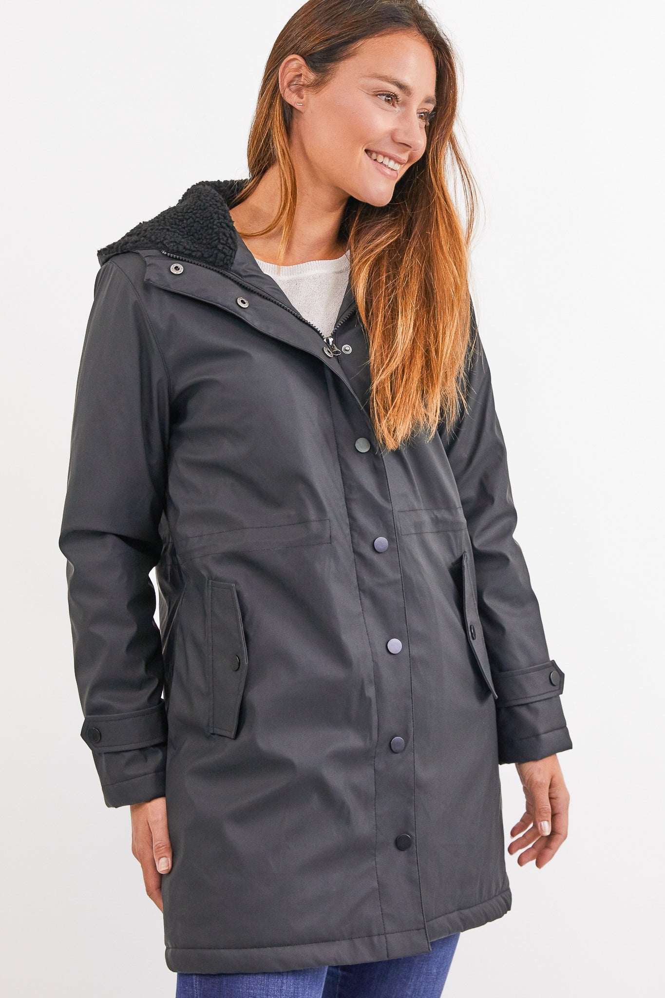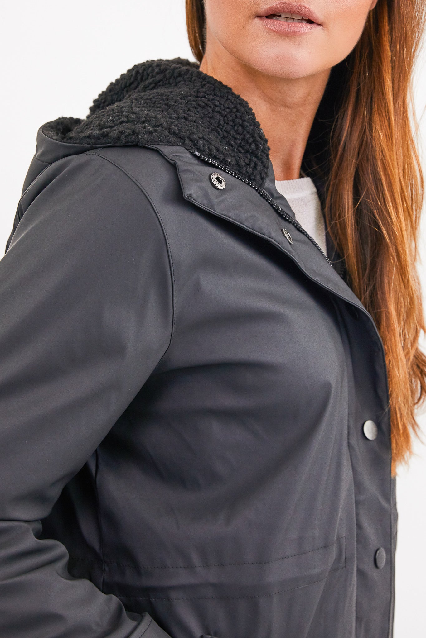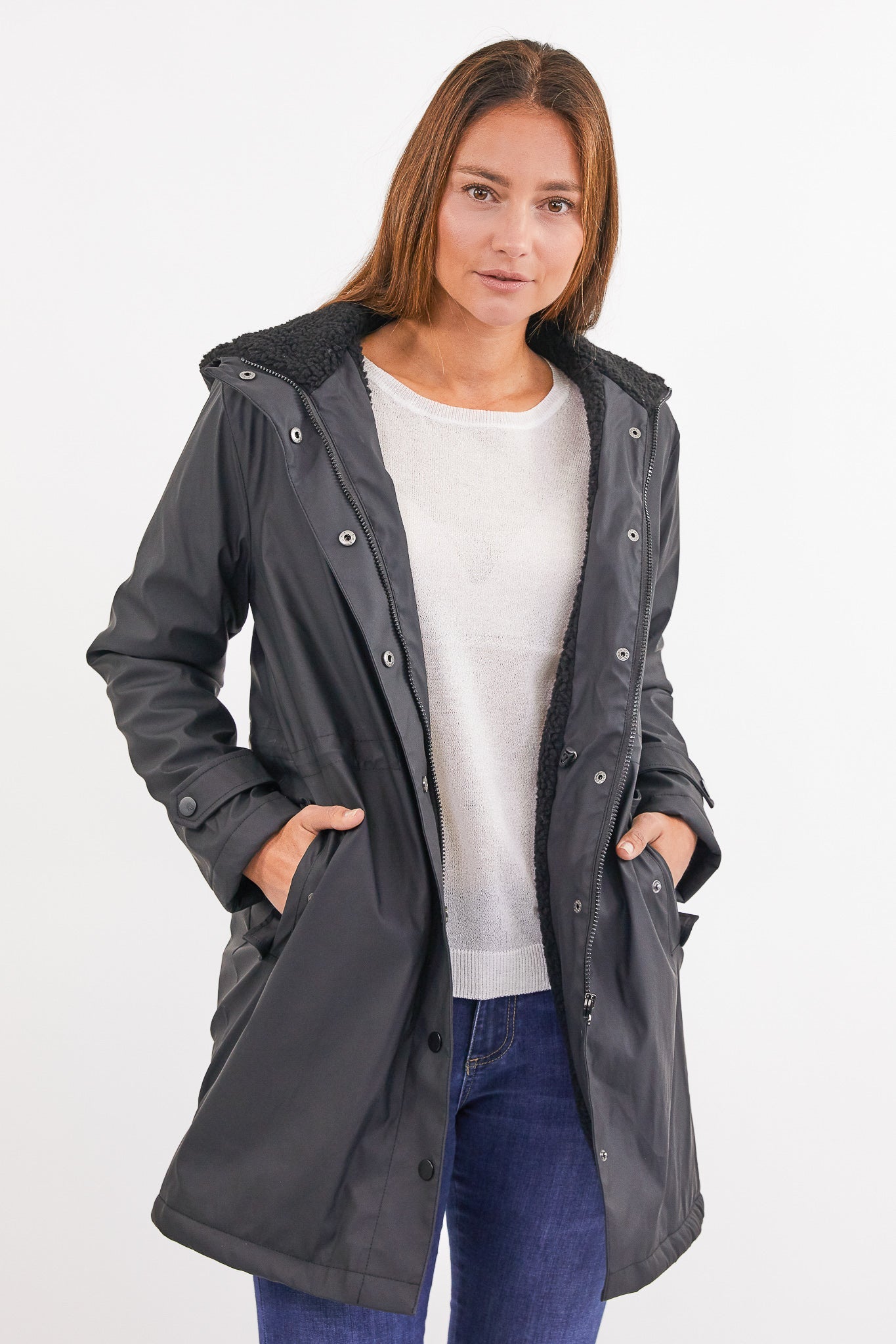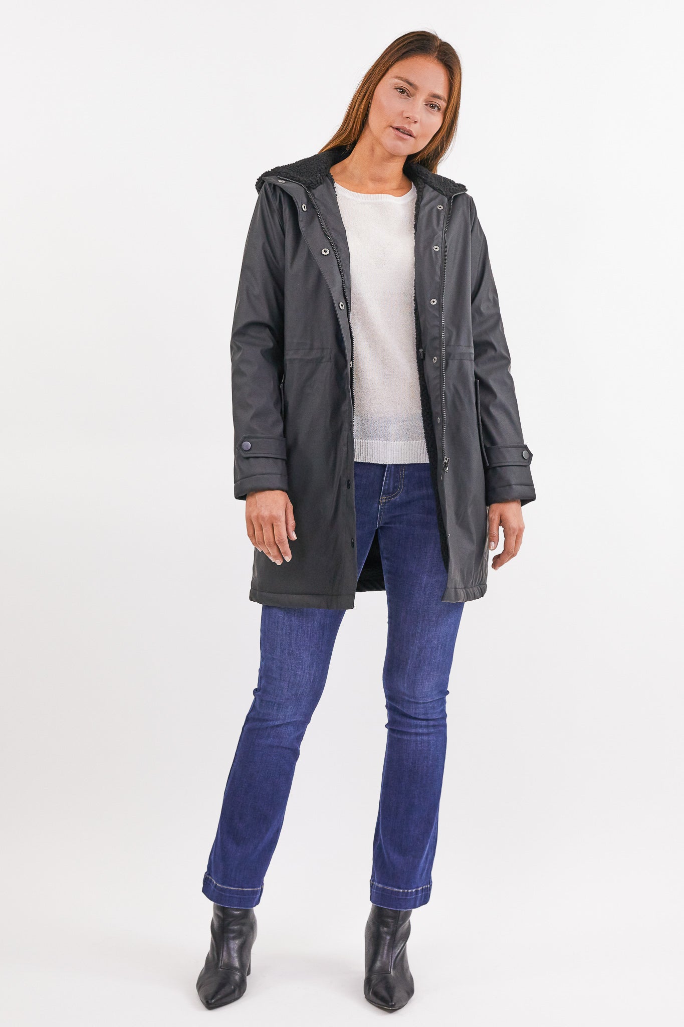 De Cicely jas heeft een knoopsluiting en is voorzien van zakken en een capuchon. De jas komt in het zwart en donkergroen.