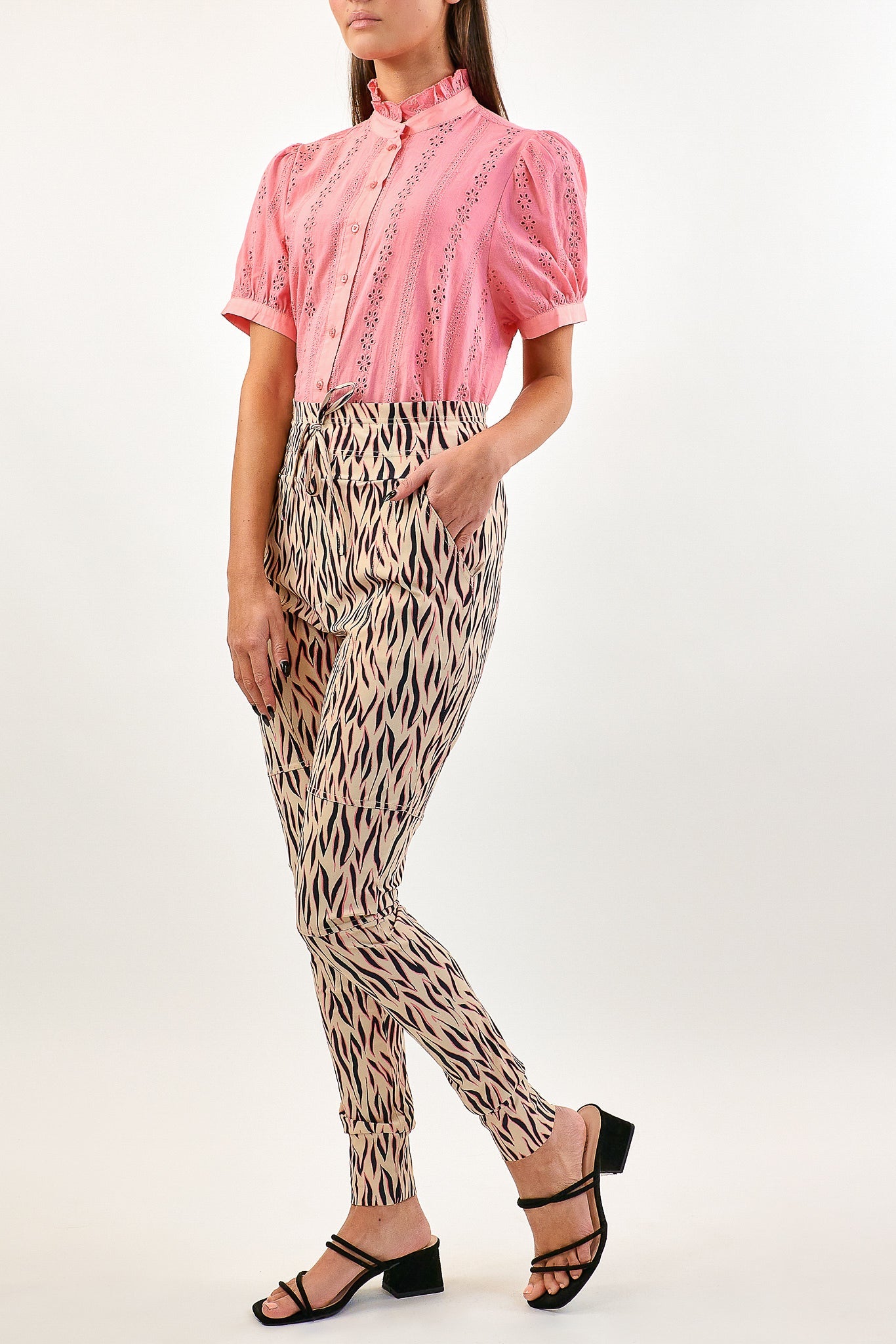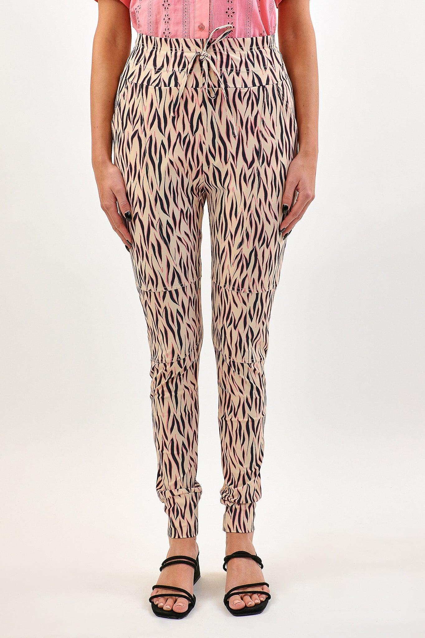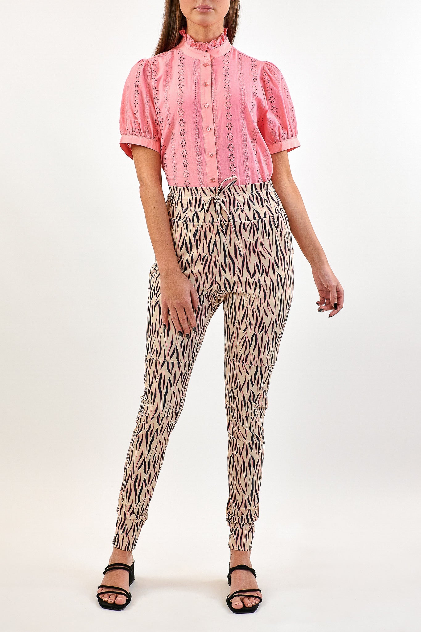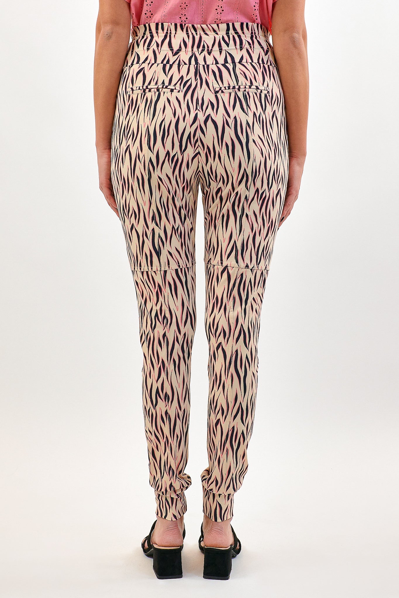 De Claire broek heeft nauwsluitende pijpen en een striksluiting. De broek heeft een zomerse print en is gemaakt van de comfortabele travelstof. Deze stof biedt ultiem comfort door de stretch, is makkelijk wasbaar en is kreukvrij.