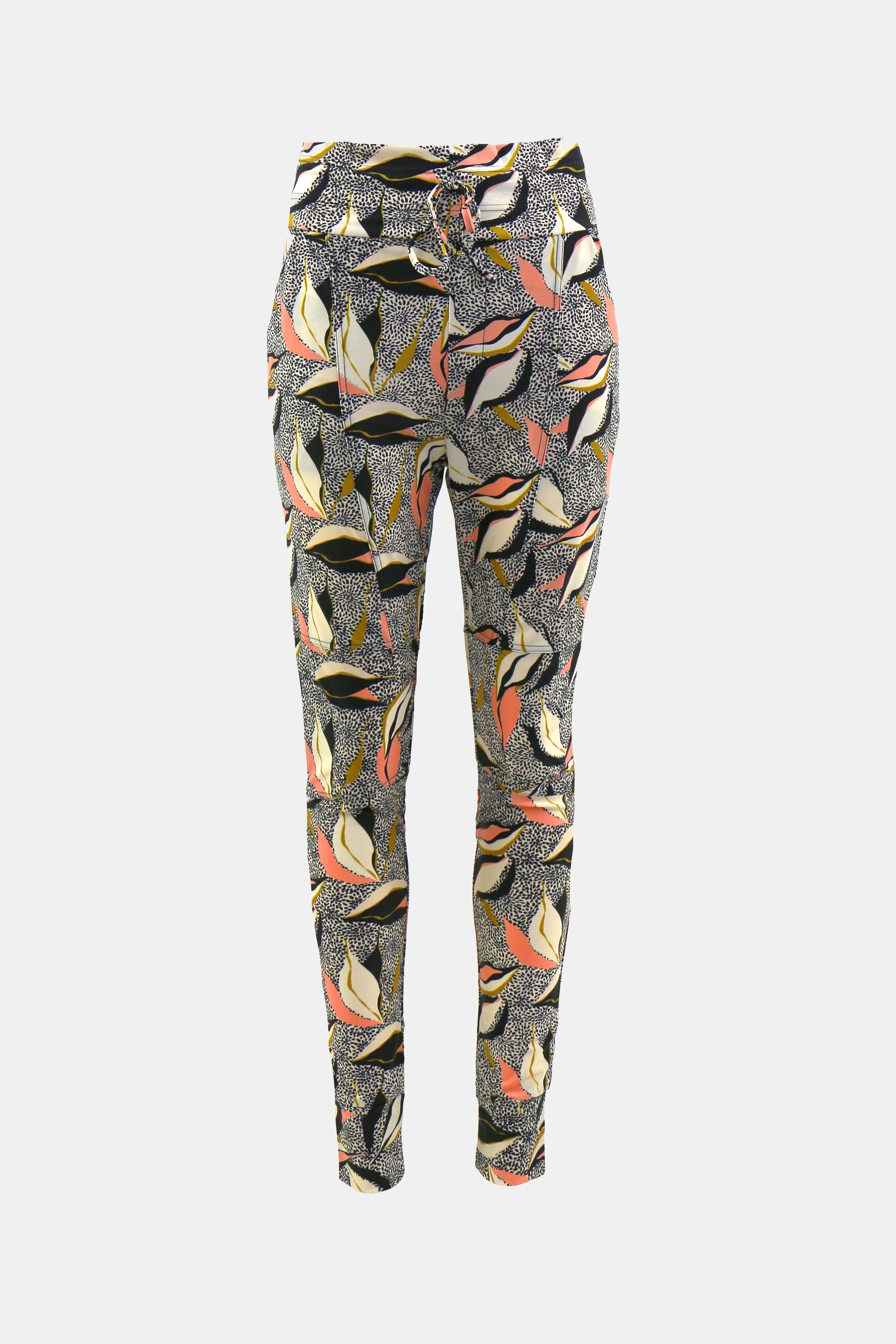 De Claire broek is een comfortabele broek met nauwsluitende pijpen. De broek is gemaakt van de unieke travelstof en heeft een strikkoord aan de bovenkant. Combineer met de Elena top voor een matchende set in dezelfde print.