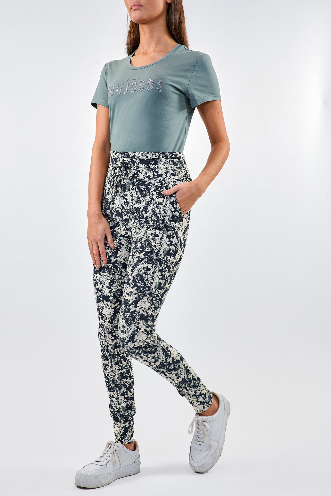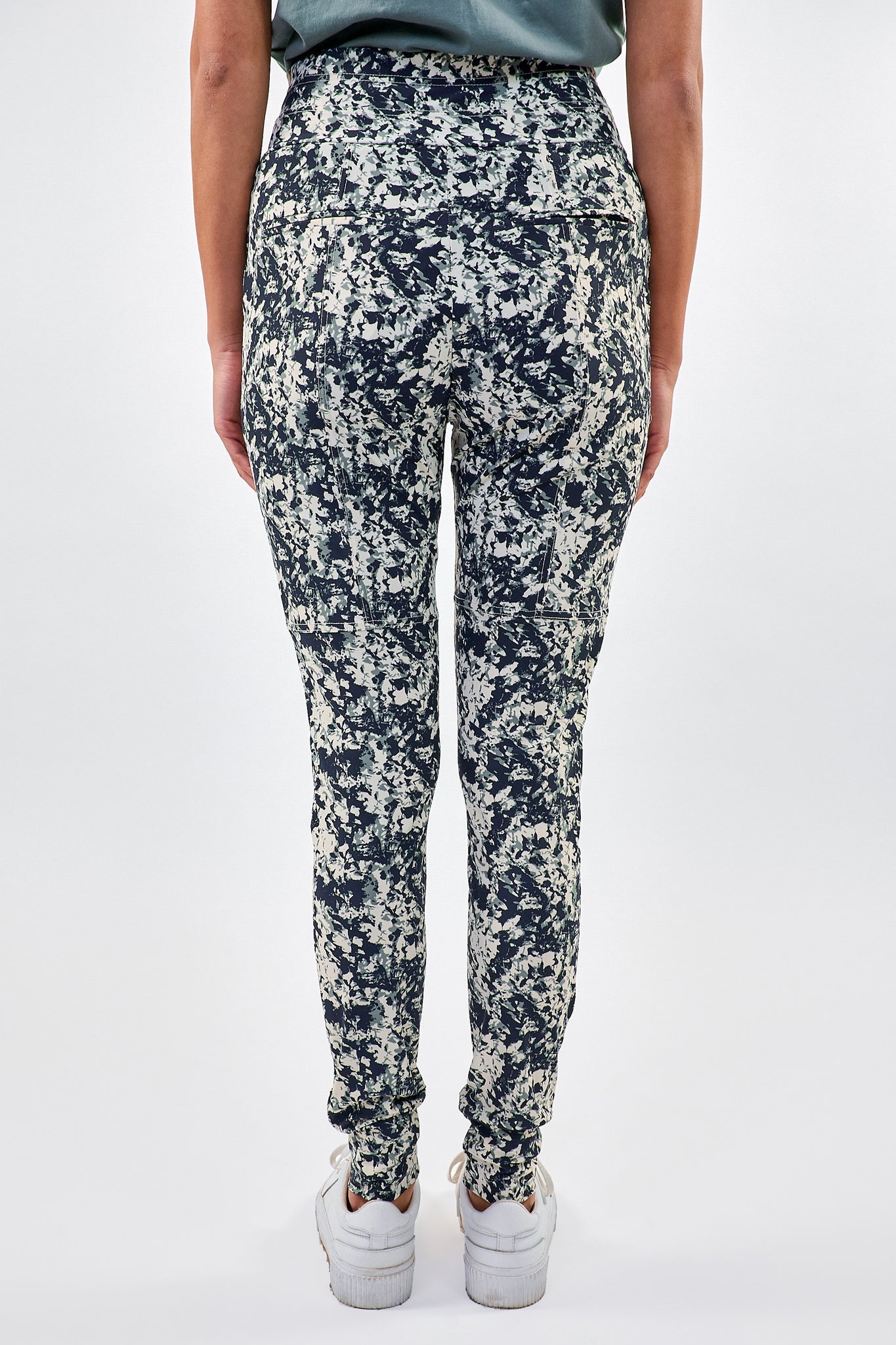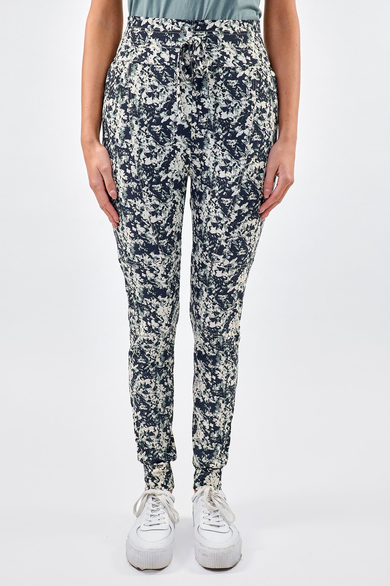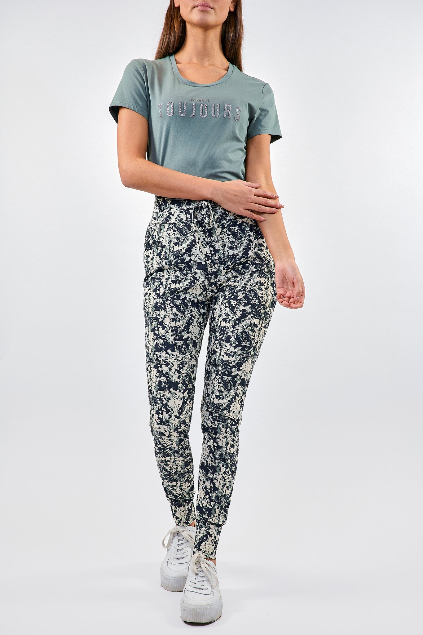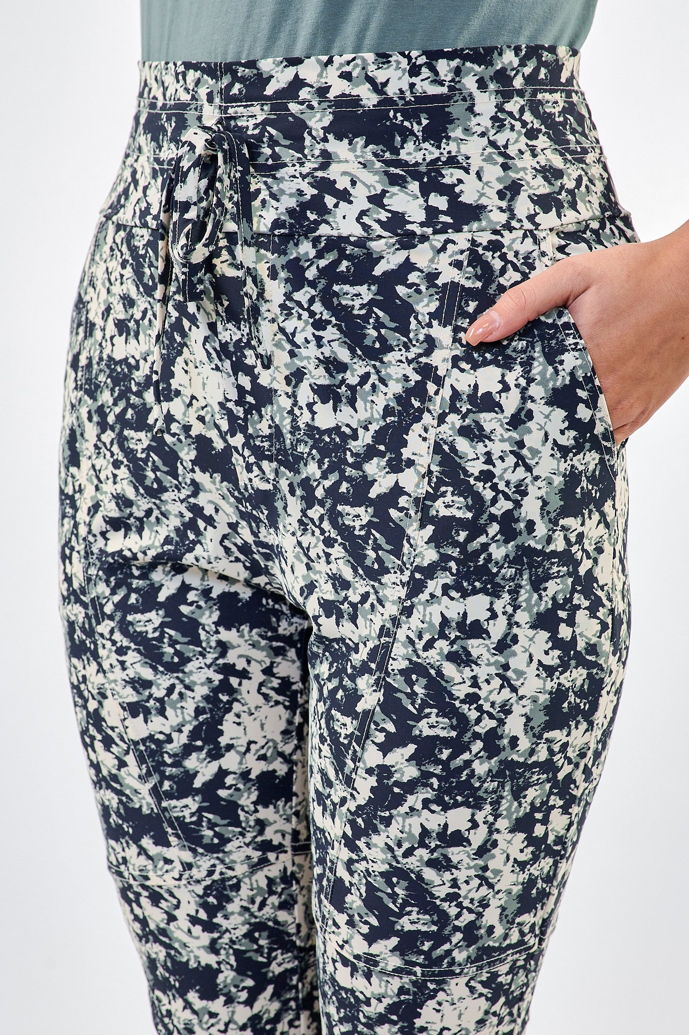 De Claire broek heeft smalle pijpen en is voorzien van een elastische tailleband met strik. Gemaakt van fijne en comfortabele travelstof.