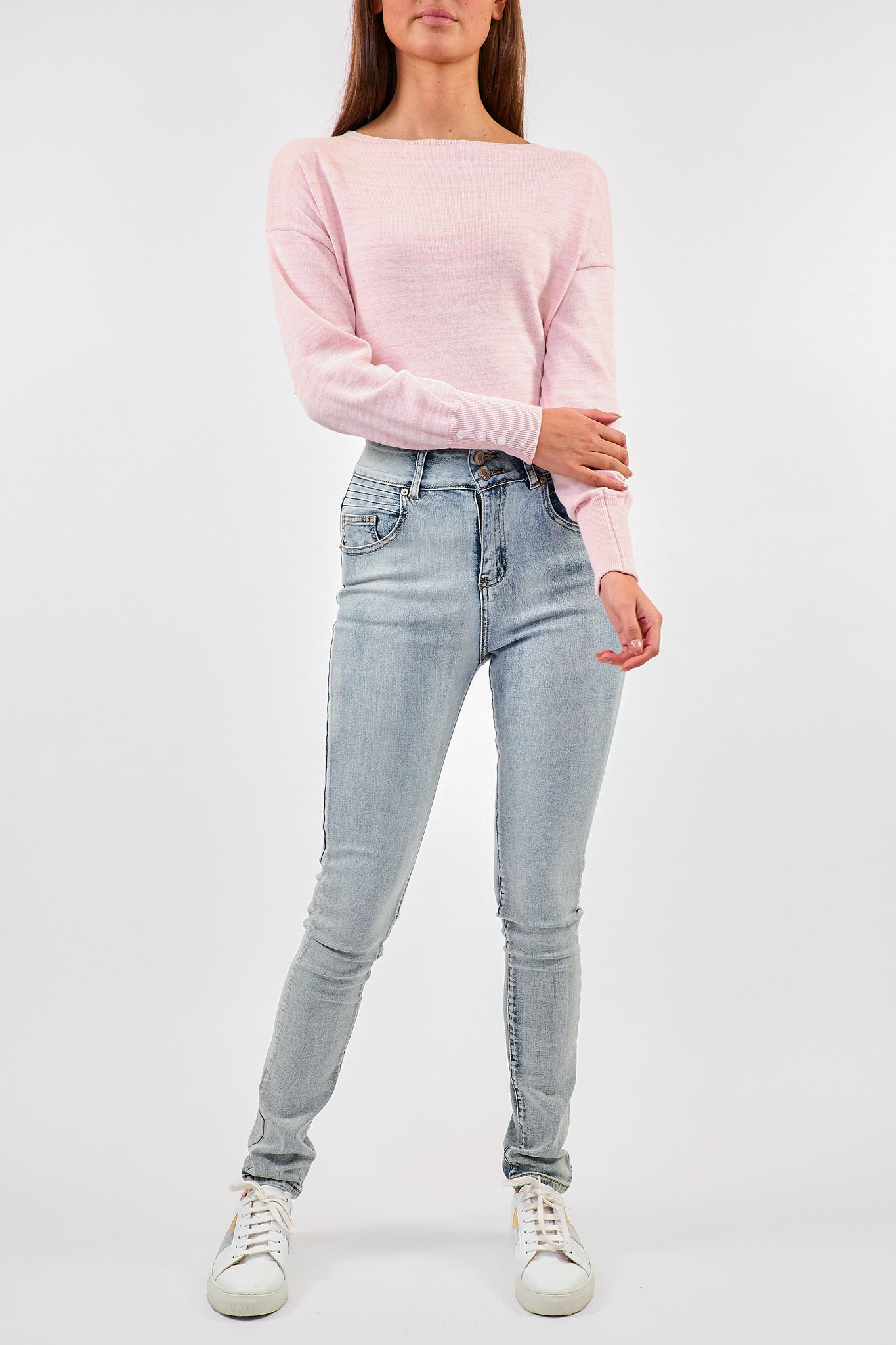 De Dalia trui heeft een soepelvallende pasvorm en een detail om de polsband.