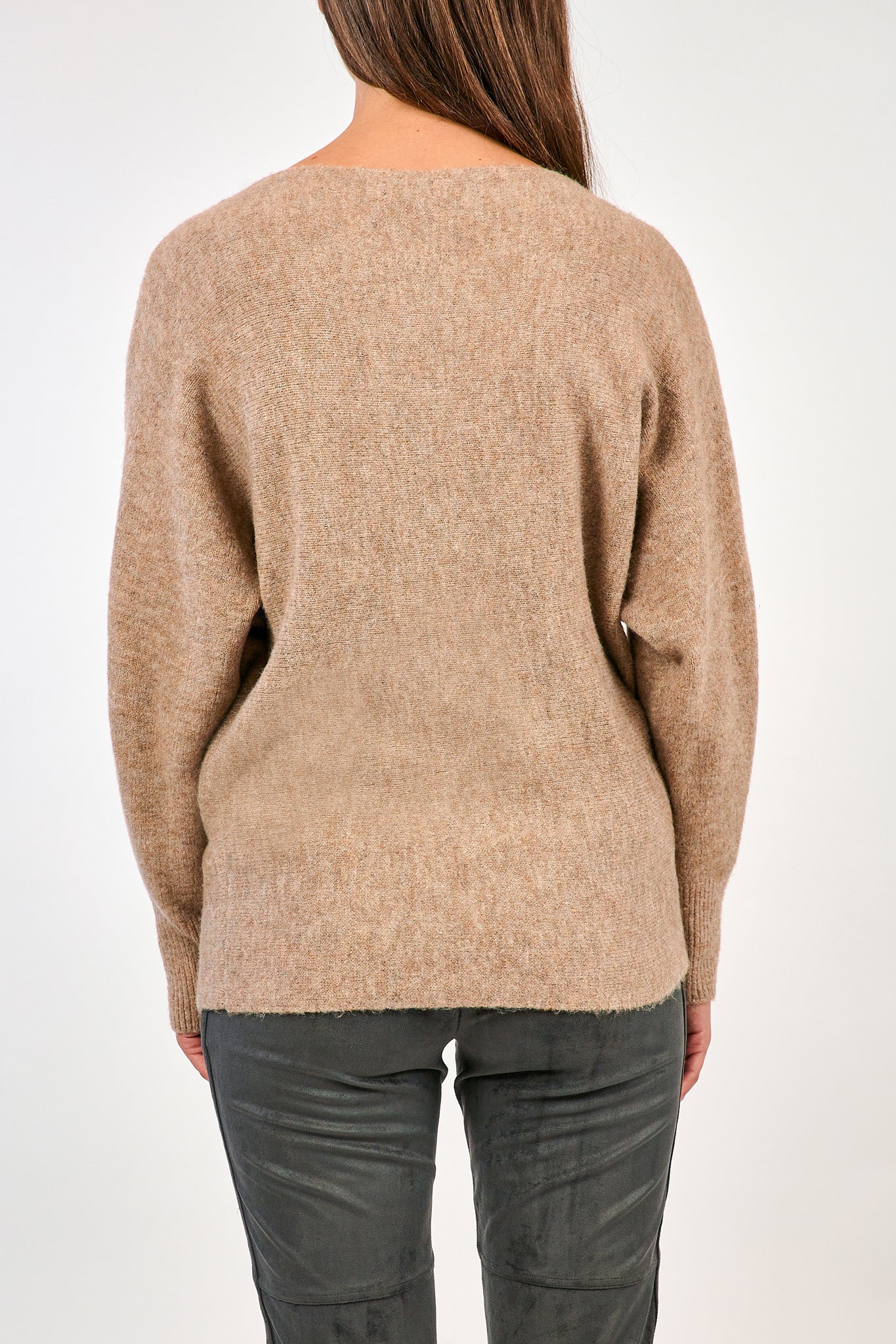 De Dalia top heeft een ronde hals en lange mouwen. De top heeft een los vallend model en een lichte glinstering.
