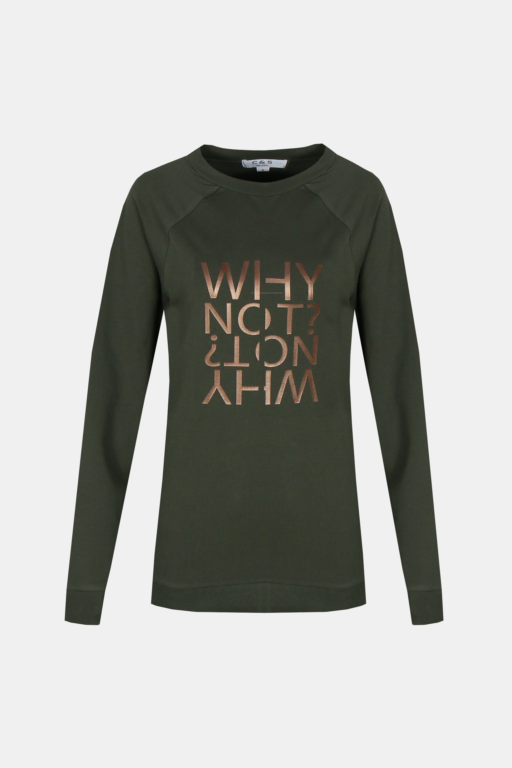 De Dania sweater heeft lange mouwen en een ronde hals. De trui is voorzien van de opdruk: "WHY NOT". Deze trui komt in het groen, jeansblauw en zwart.
